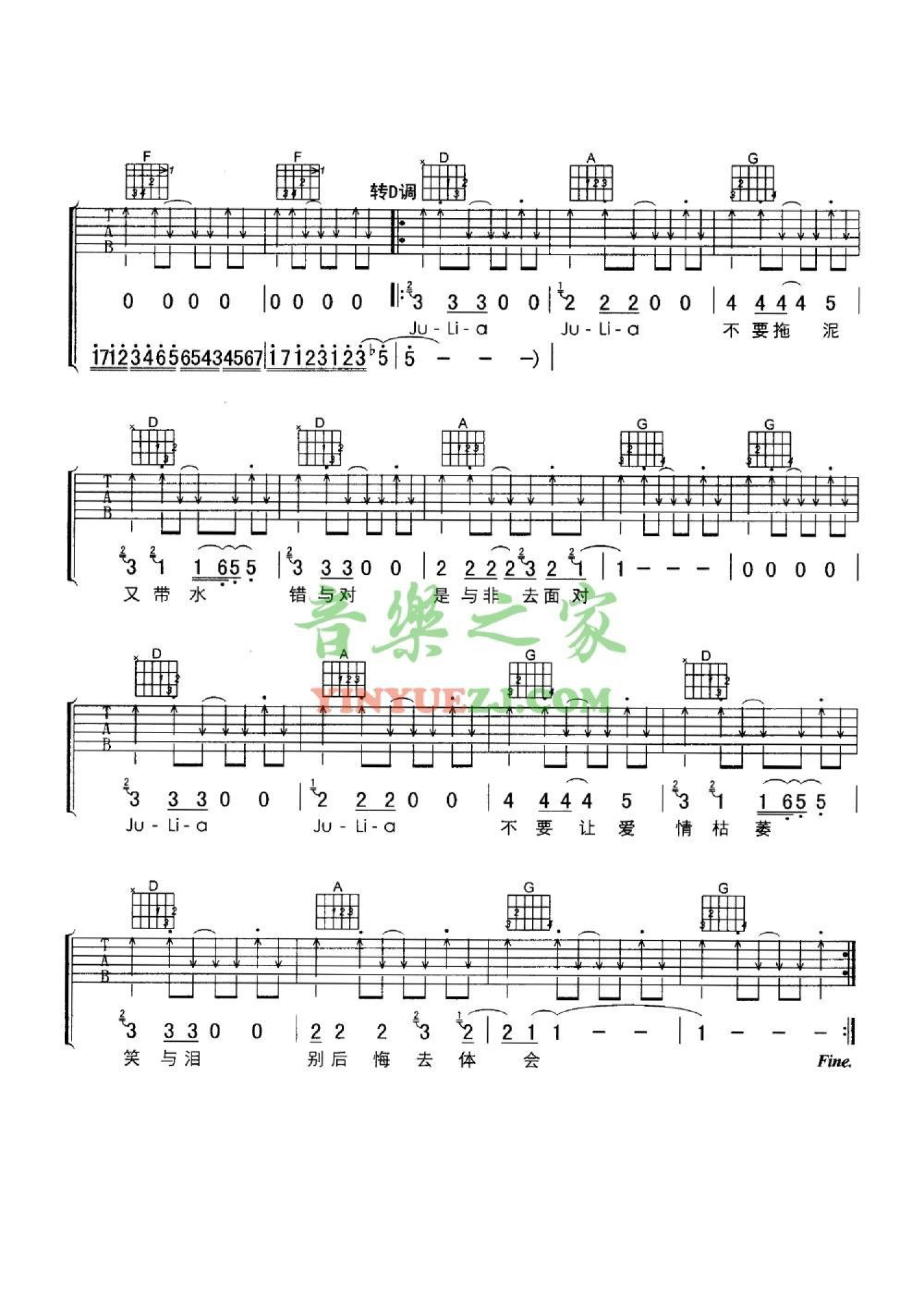 当前位置:琴谱网>吉他弹唱>julia
