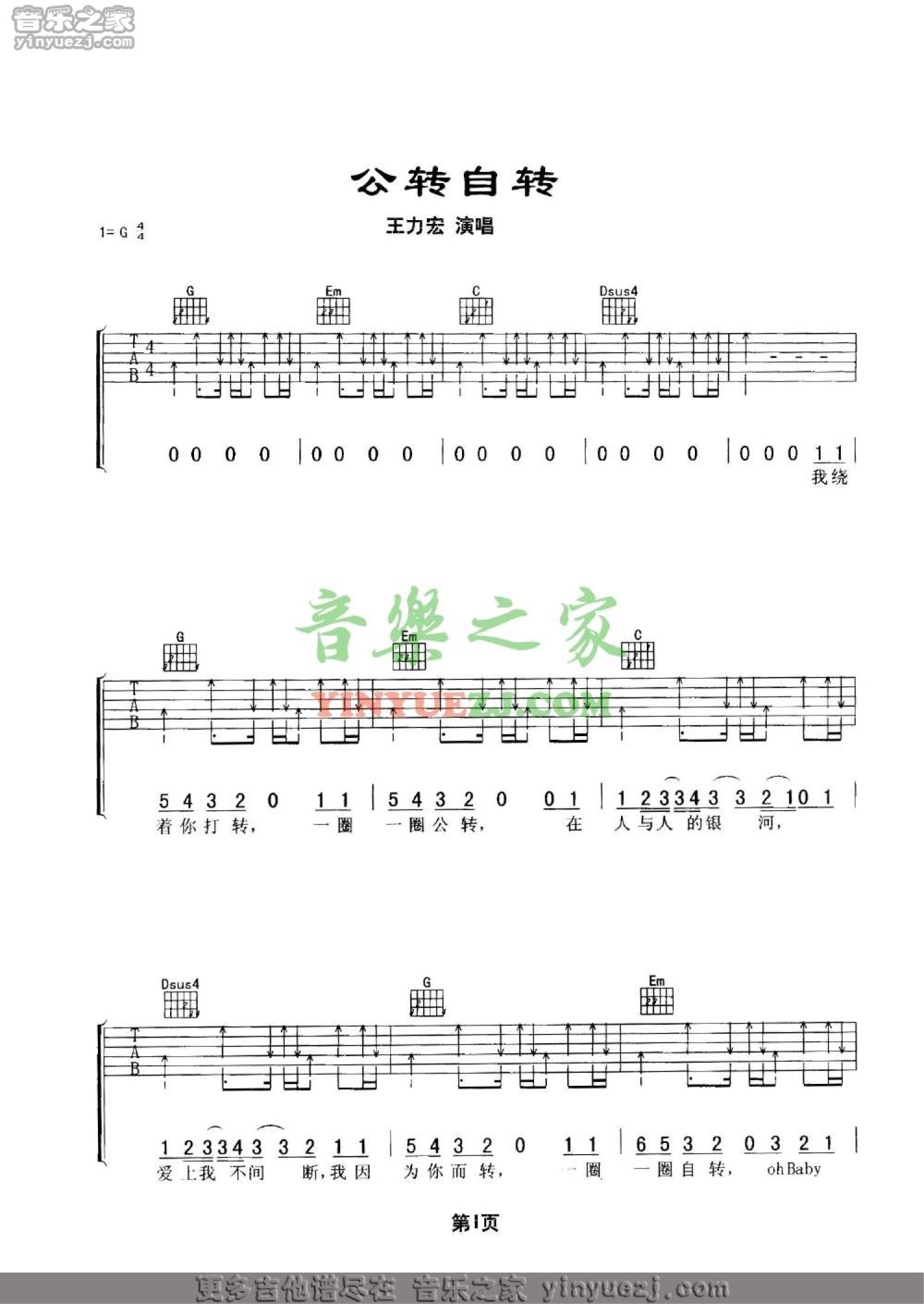 公转自转吉他谱 - 王力宏 - G调吉他弹唱谱