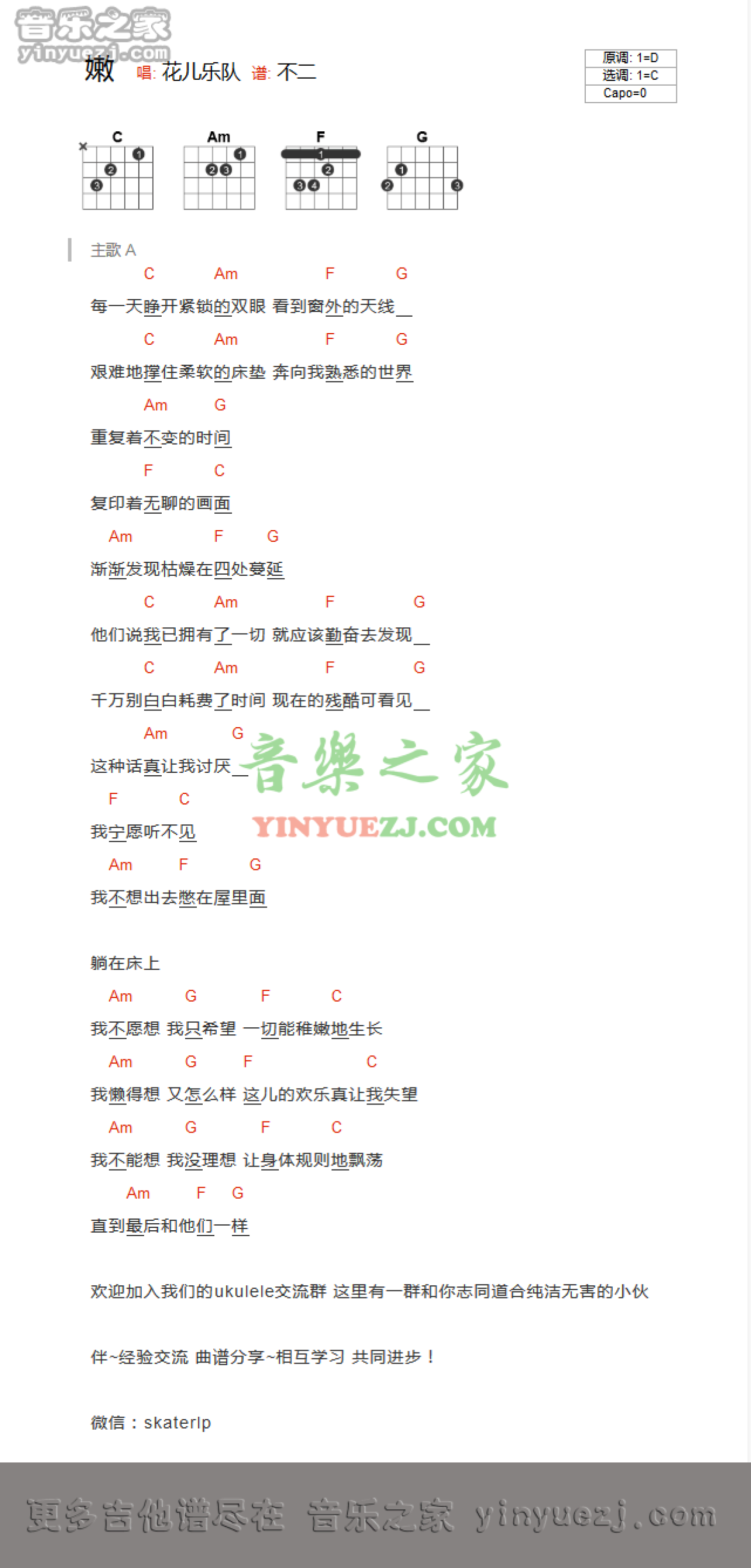 嫩吉他谱 - 花儿乐队 - C调吉他弹唱谱 - 和弦谱