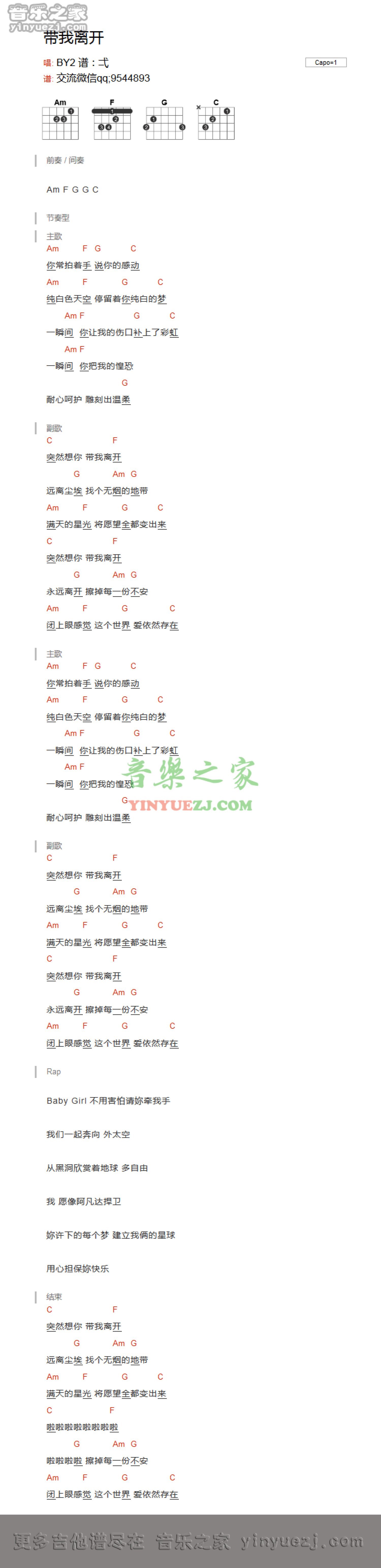 带我离开吉他谱 - By2 - 吉他弹唱谱