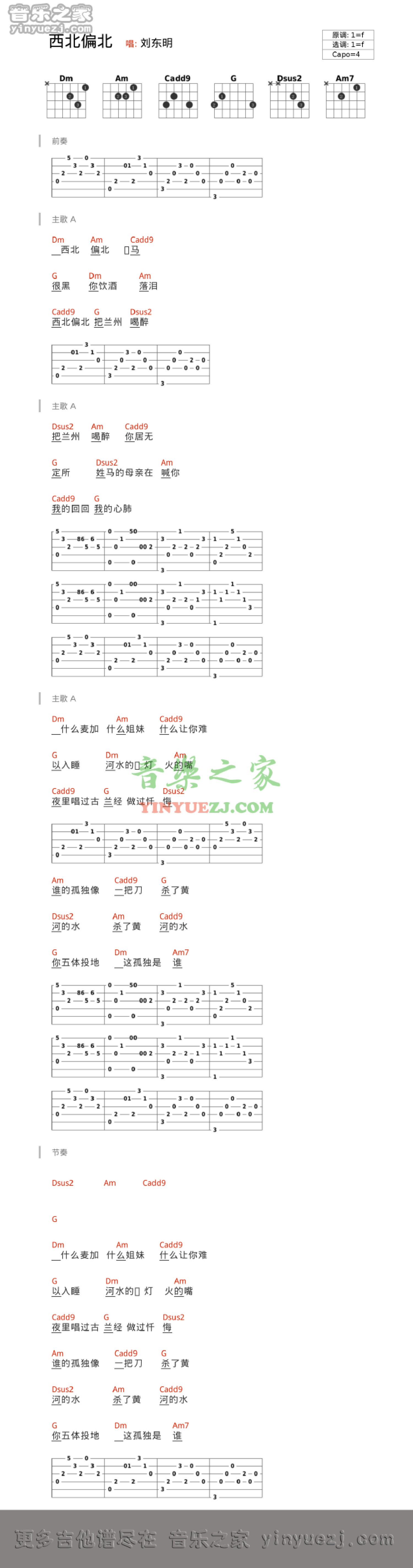 西北偏北吉他谱 - 刘东明 - F调吉他弹唱谱