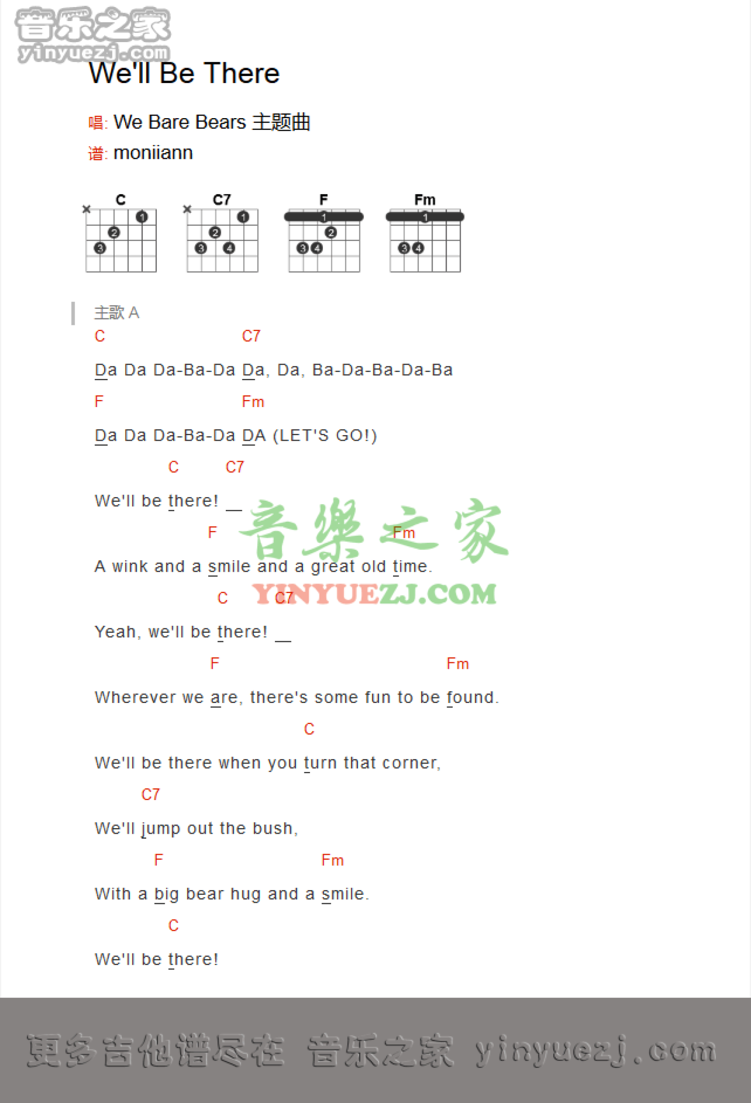 曲谱介绍: 咱们裸熊主题曲《We'll Be There》吉他