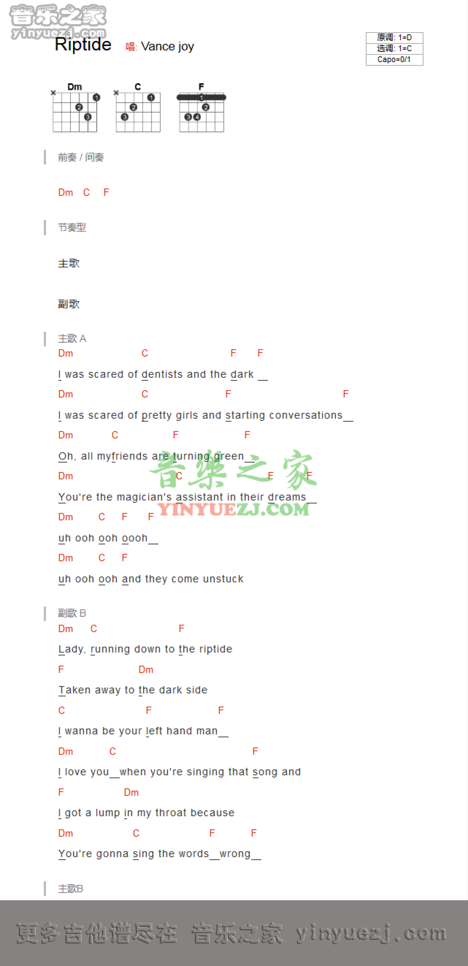 曲谱介绍: VanceJoy《riptide》吉他谱