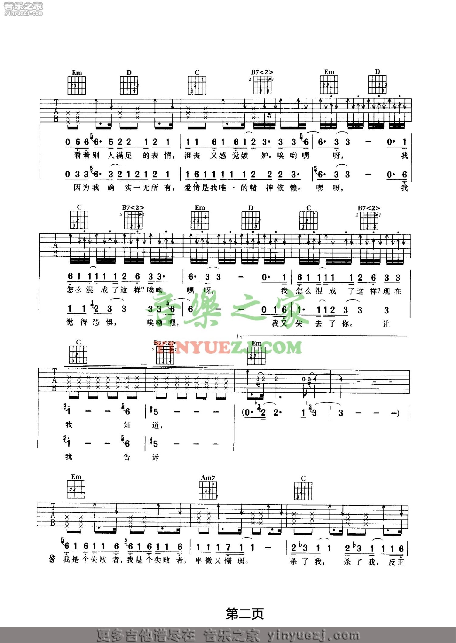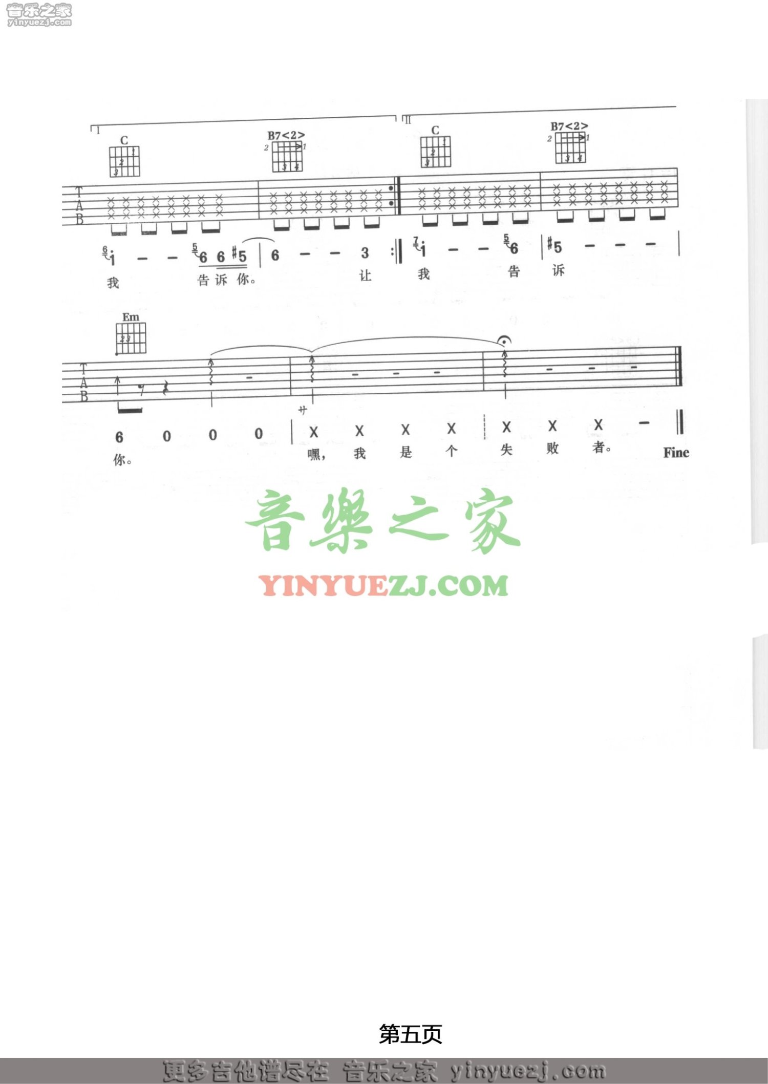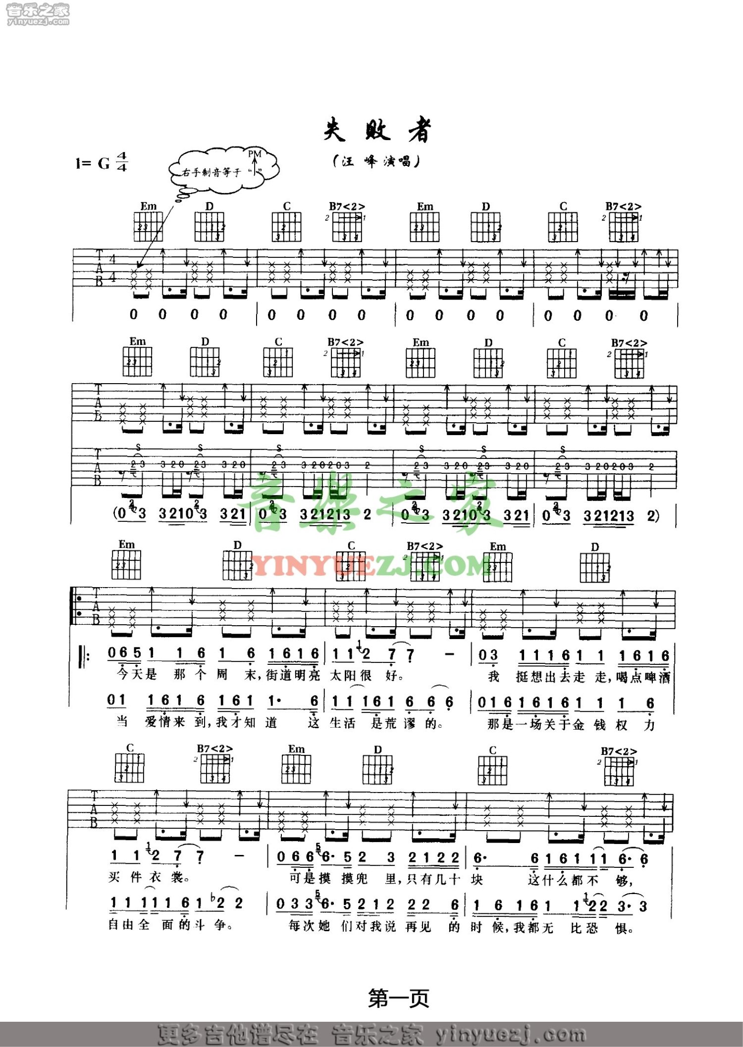 失败者吉他谱 - 汪峰 - G调吉他弹唱谱