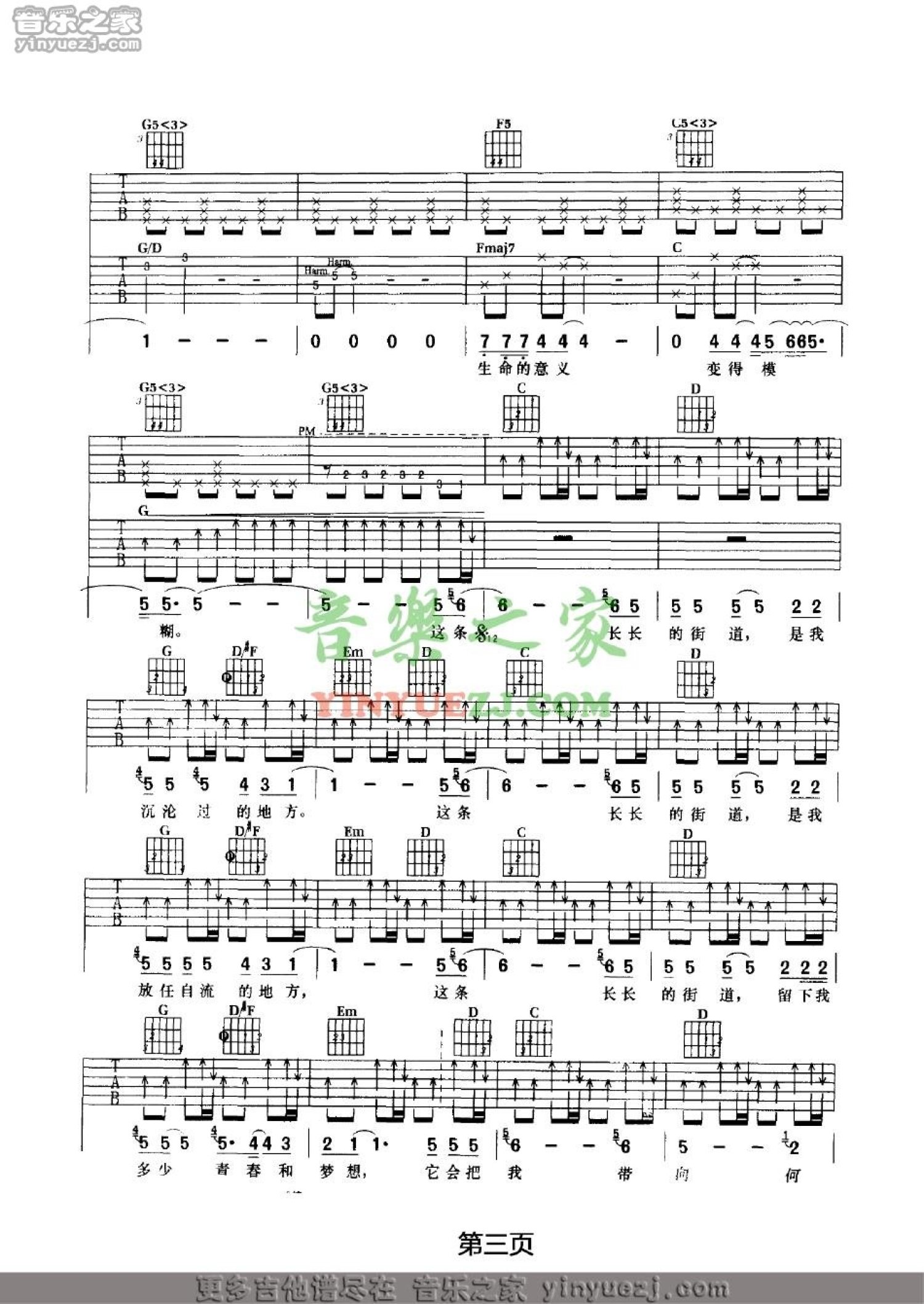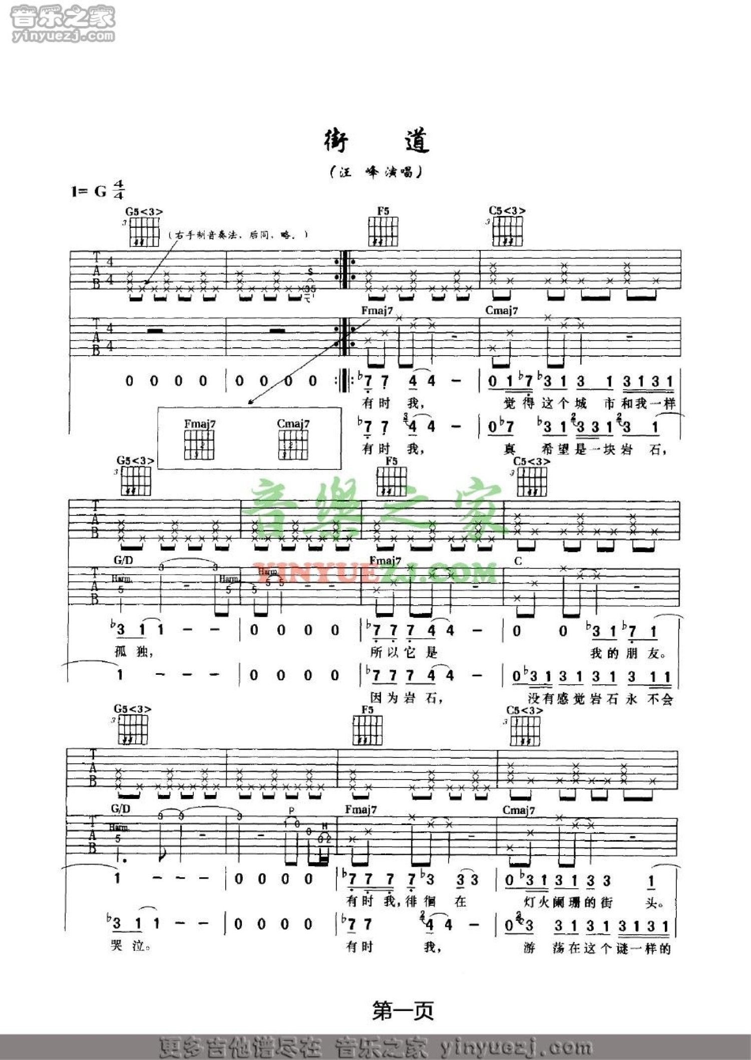 街道吉他谱 - 汪峰 - G调吉他弹唱谱