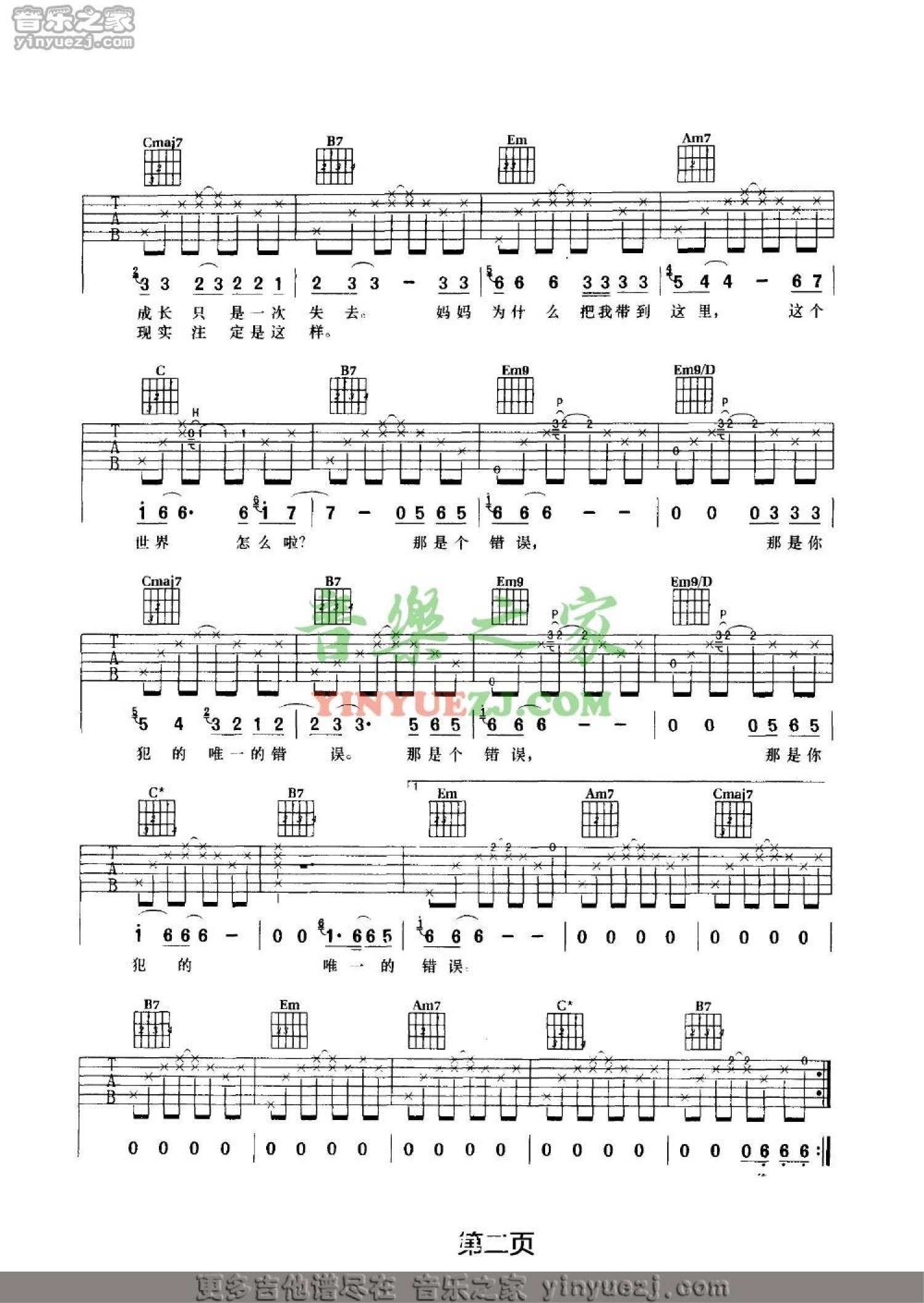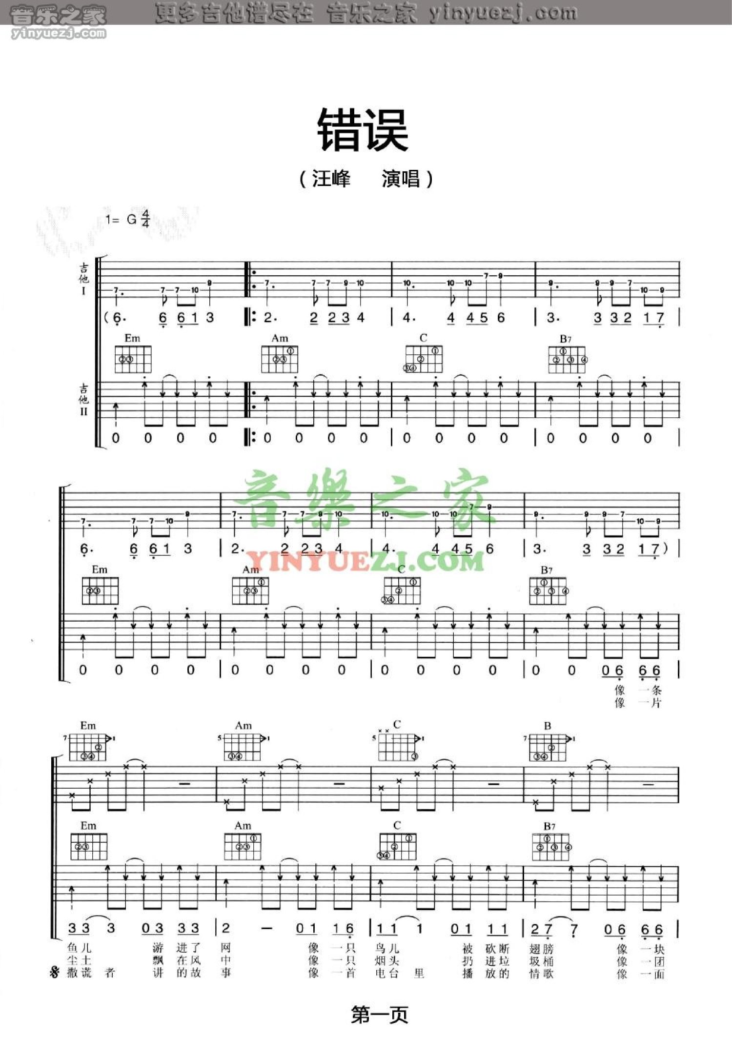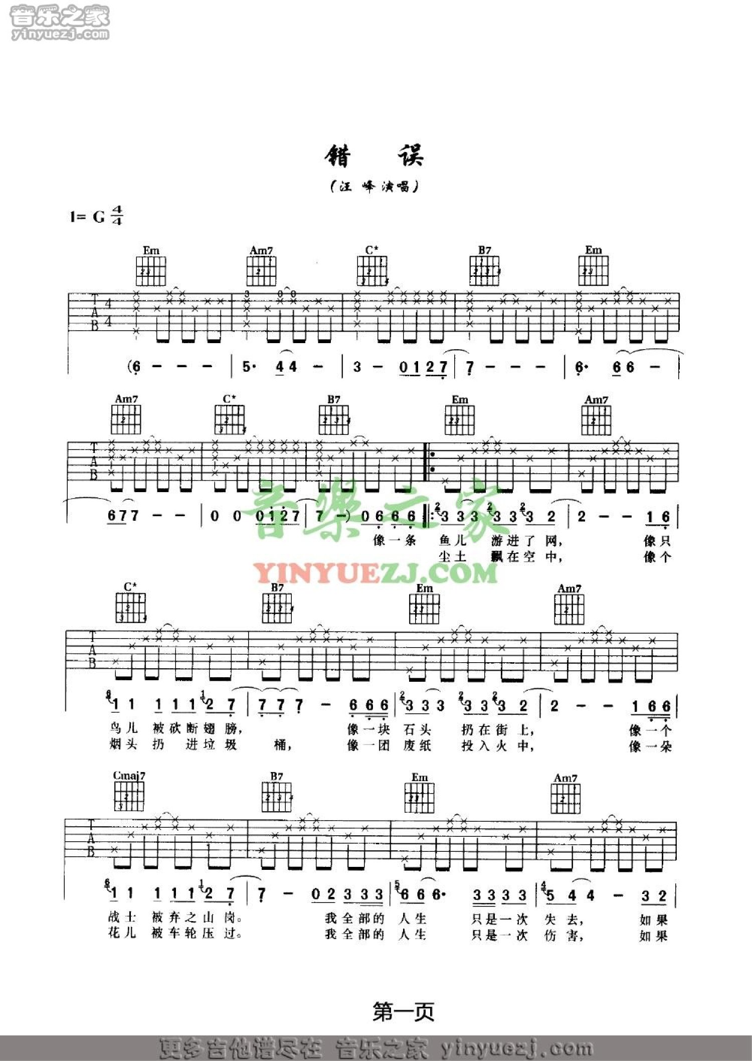 错误吉他谱 - 汪峰 - G调吉他弹唱谱