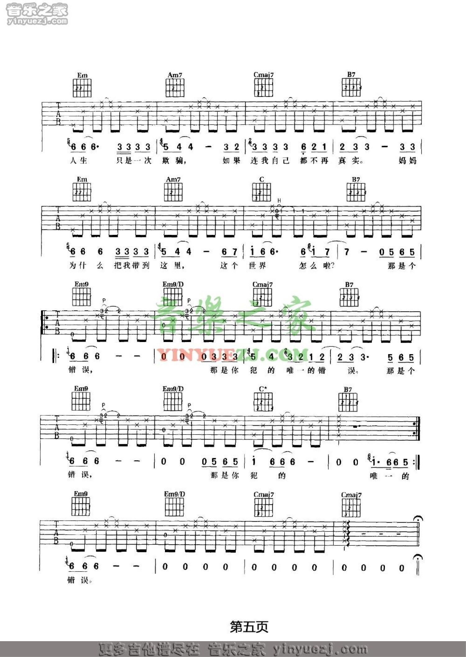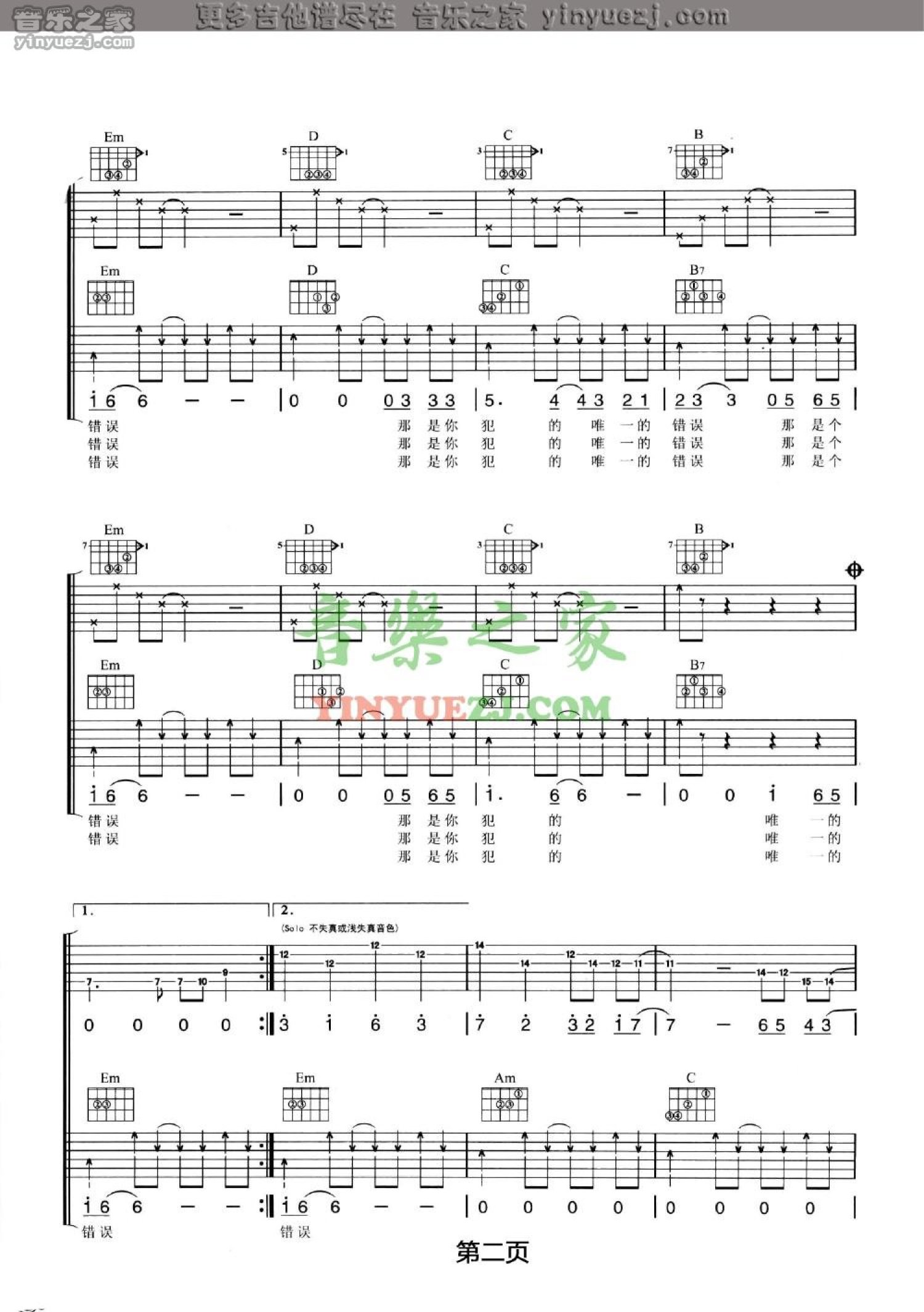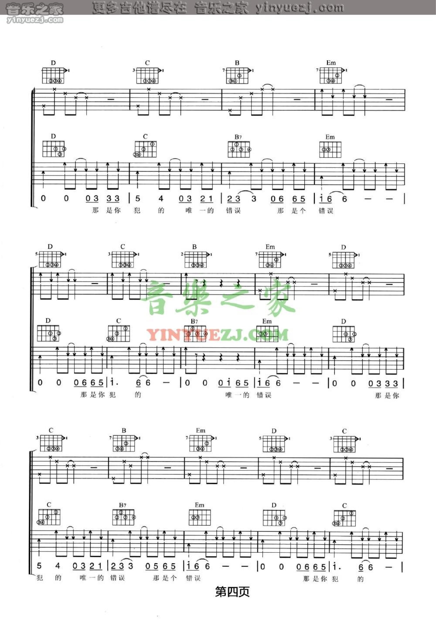 错误吉他谱 - 汪峰 - G调吉他弹唱谱