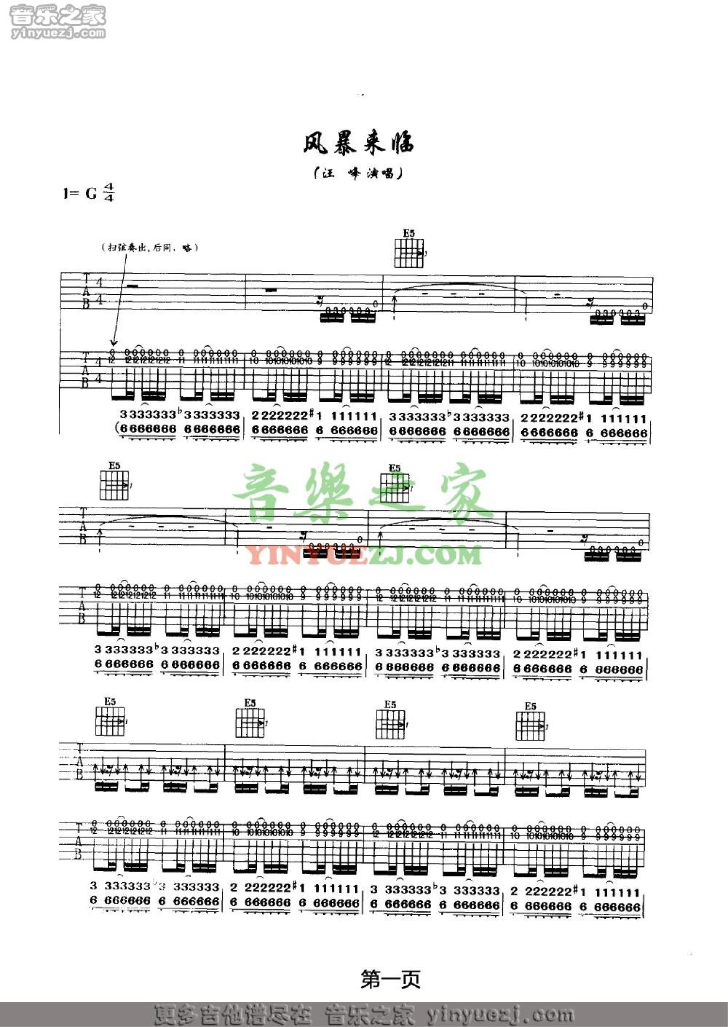 曲谱介绍: 汪峰《风暴来临》吉他谱