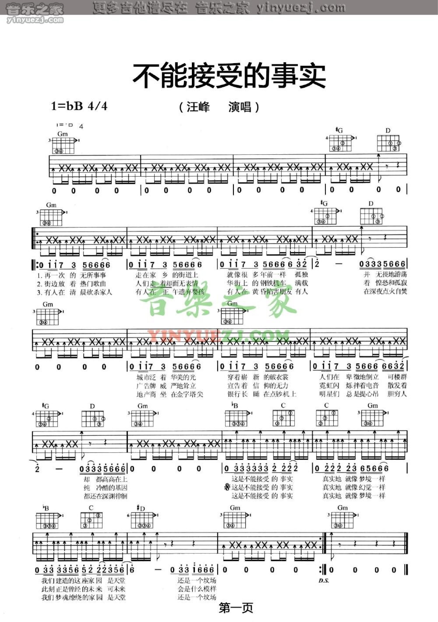 当前位置:琴谱网>吉他弹唱>不能接受的事实