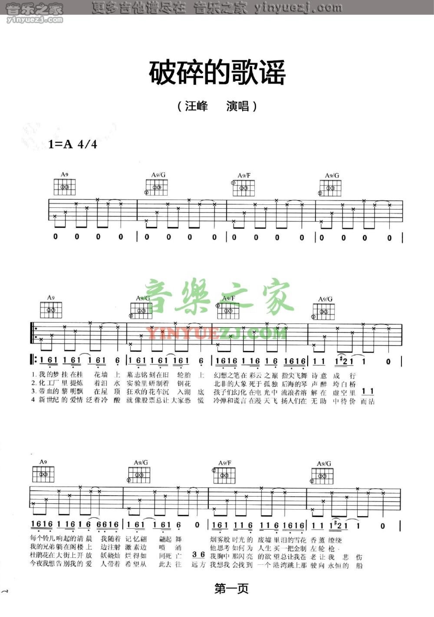 破碎的歌谣吉他谱 - 汪峰 - A调吉他弹唱谱