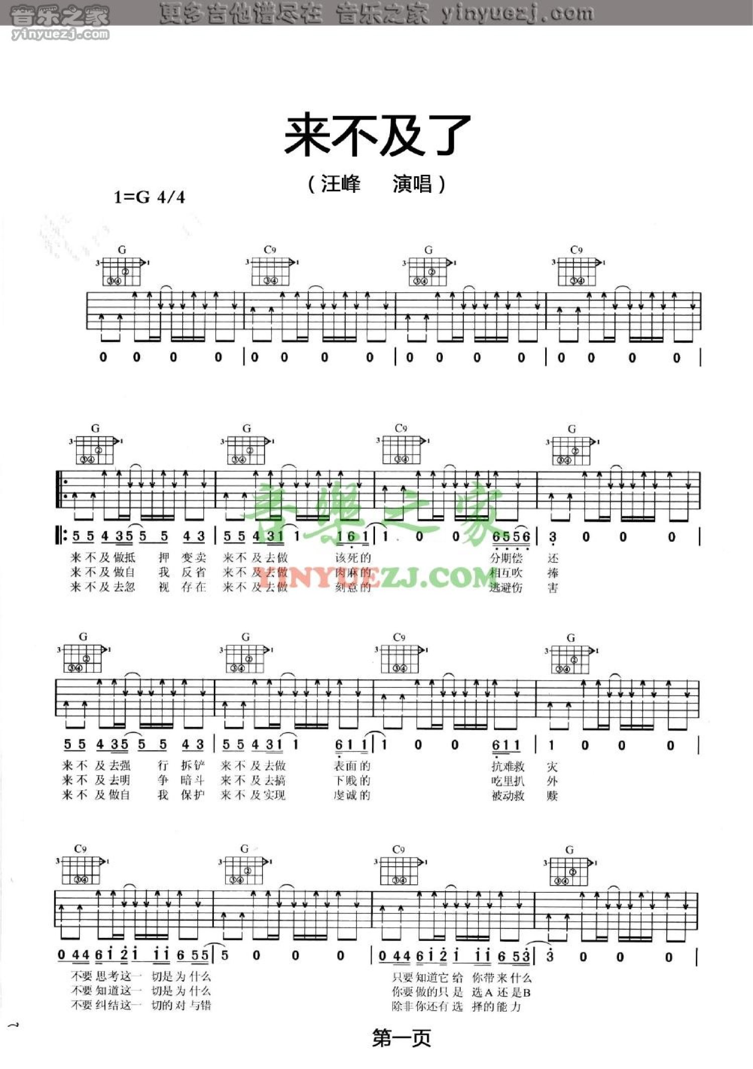 来不及了吉他谱 - 汪峰 - G调吉他弹唱谱