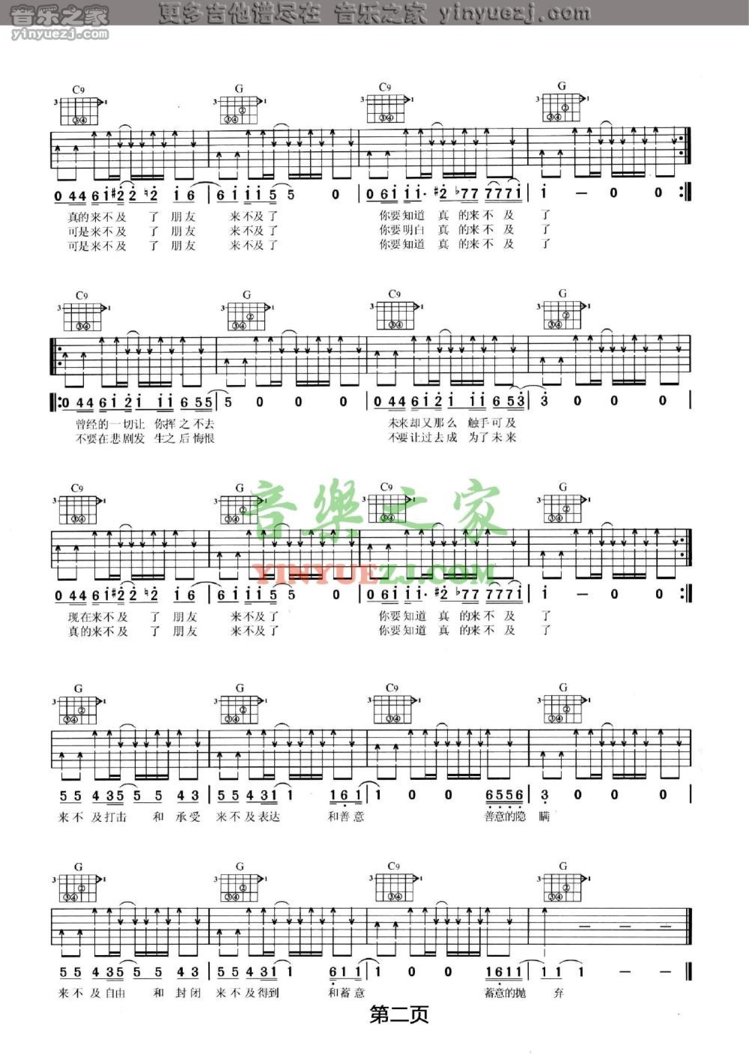 曲谱介绍: 汪峰《来不及了》吉他谱