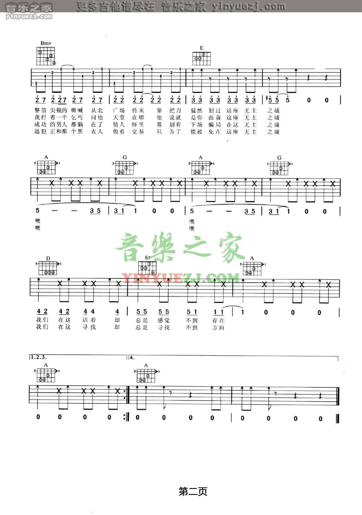 当前位置:琴谱网>吉他弹唱>无主之城