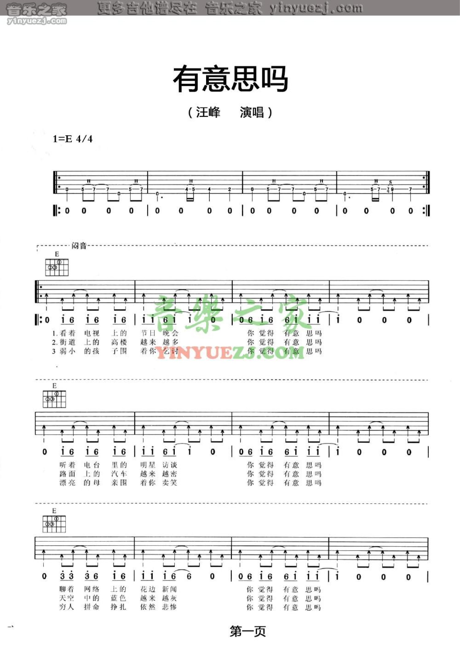 有意思吗吉他谱 - 汪峰 - E调吉他弹唱谱