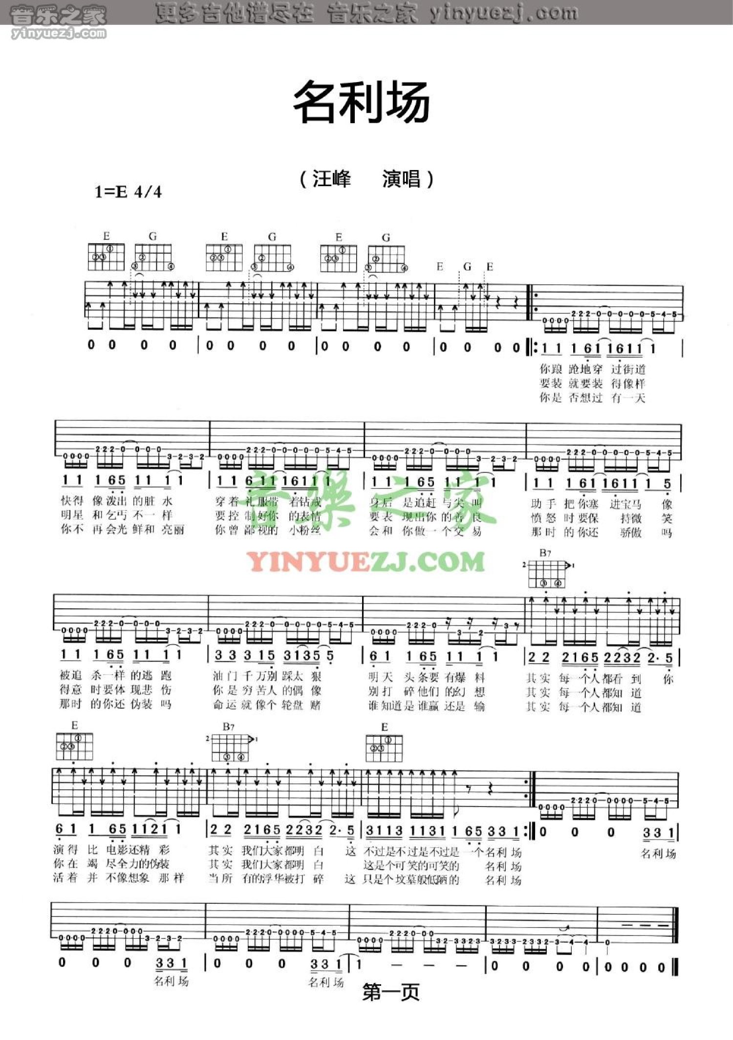 名利场吉他谱 - 汪峰 - E调吉他弹唱谱