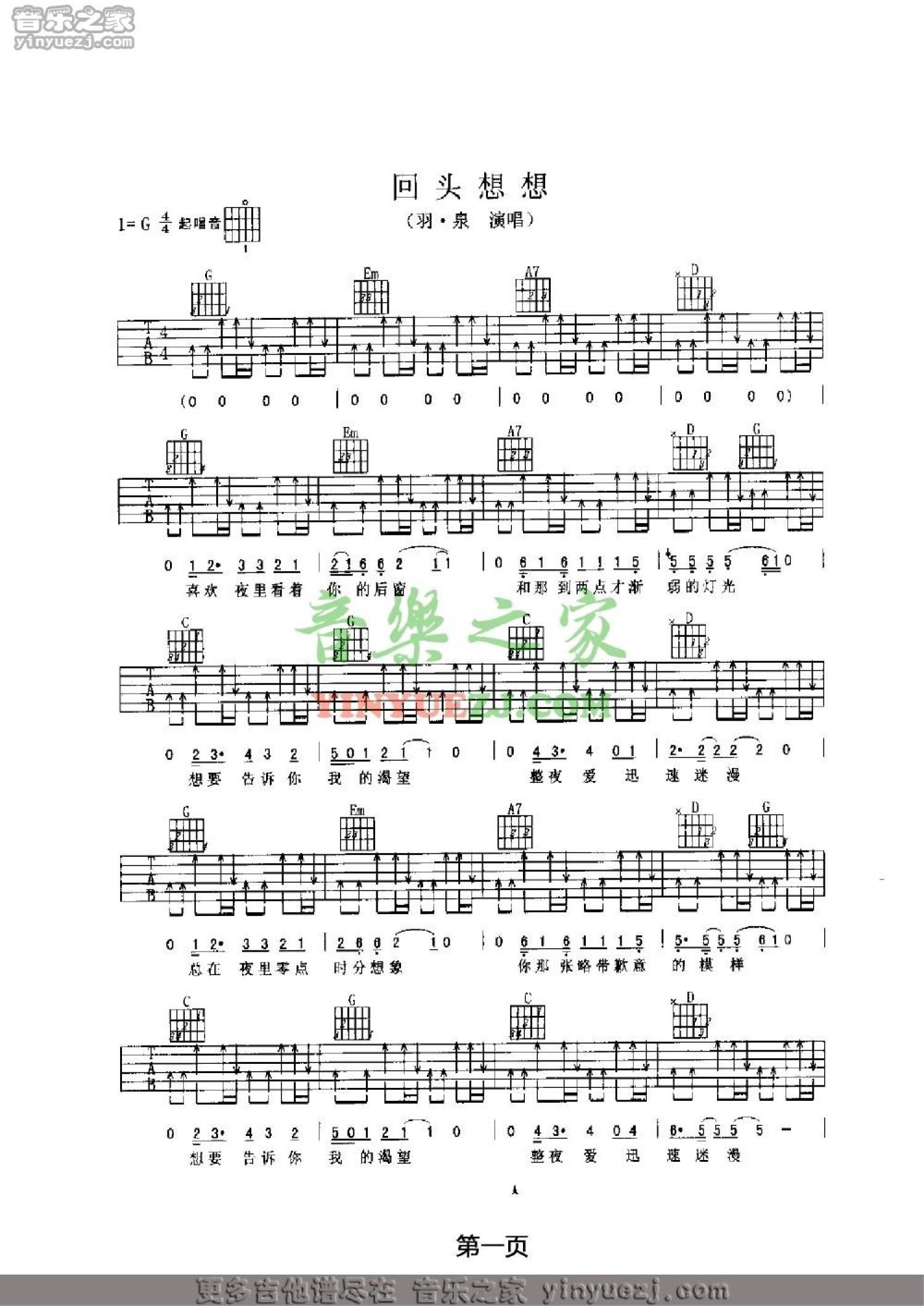 曲谱介绍: 羽泉《回头想想》吉他谱