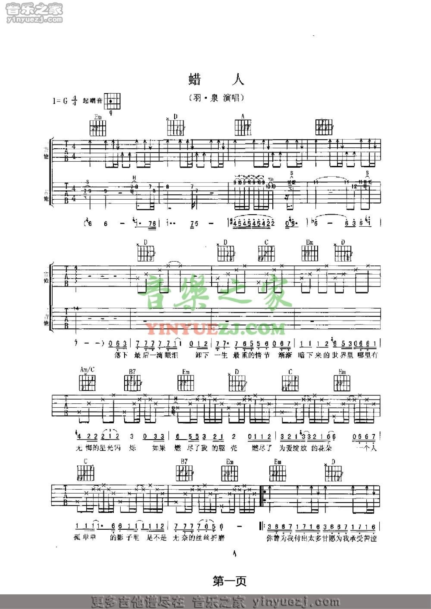 当前位置:琴谱网>吉他弹唱>蜡人
