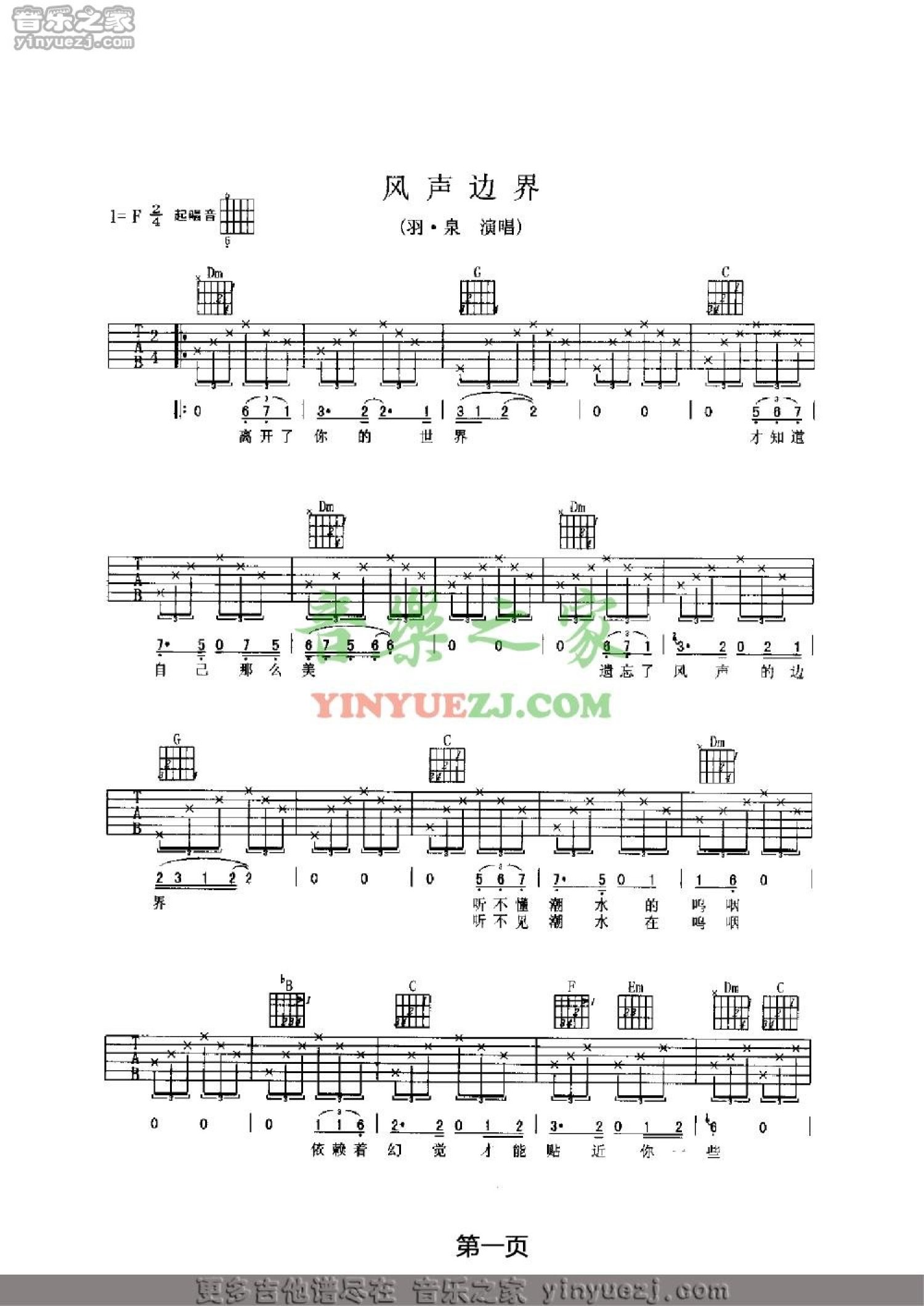 当前位置:琴谱网>吉他弹唱>风声边界