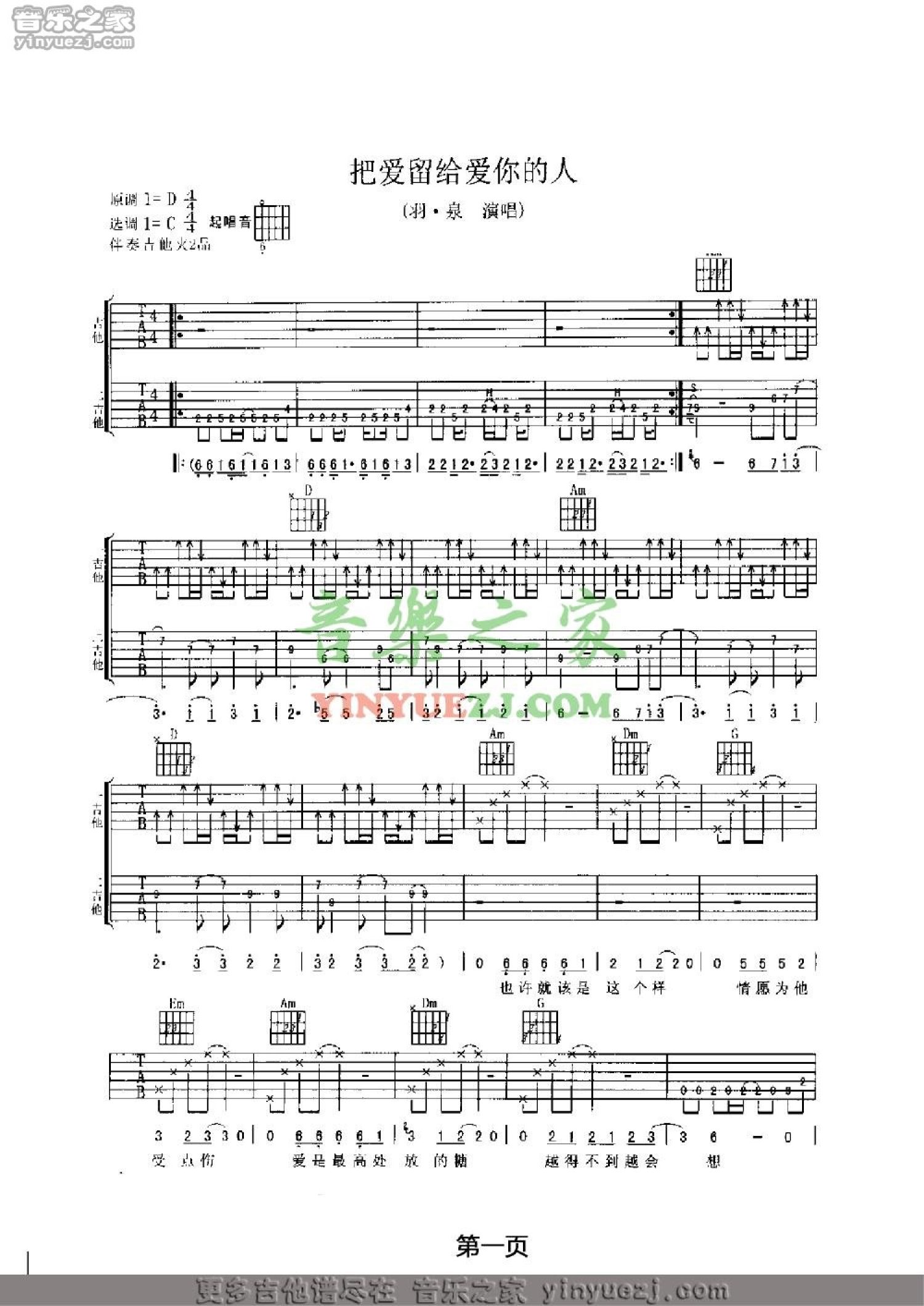 曲谱介绍: 模糊慎选!!羽泉《把爱留给爱你的人》吉他谱