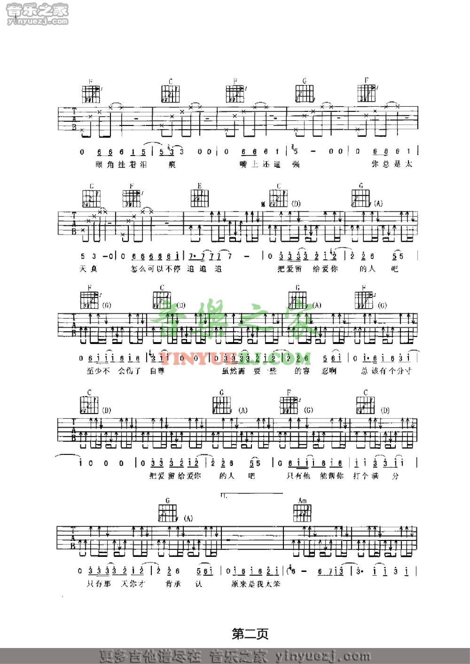 当前位置:琴谱网>吉他弹唱>把爱留给爱你的人