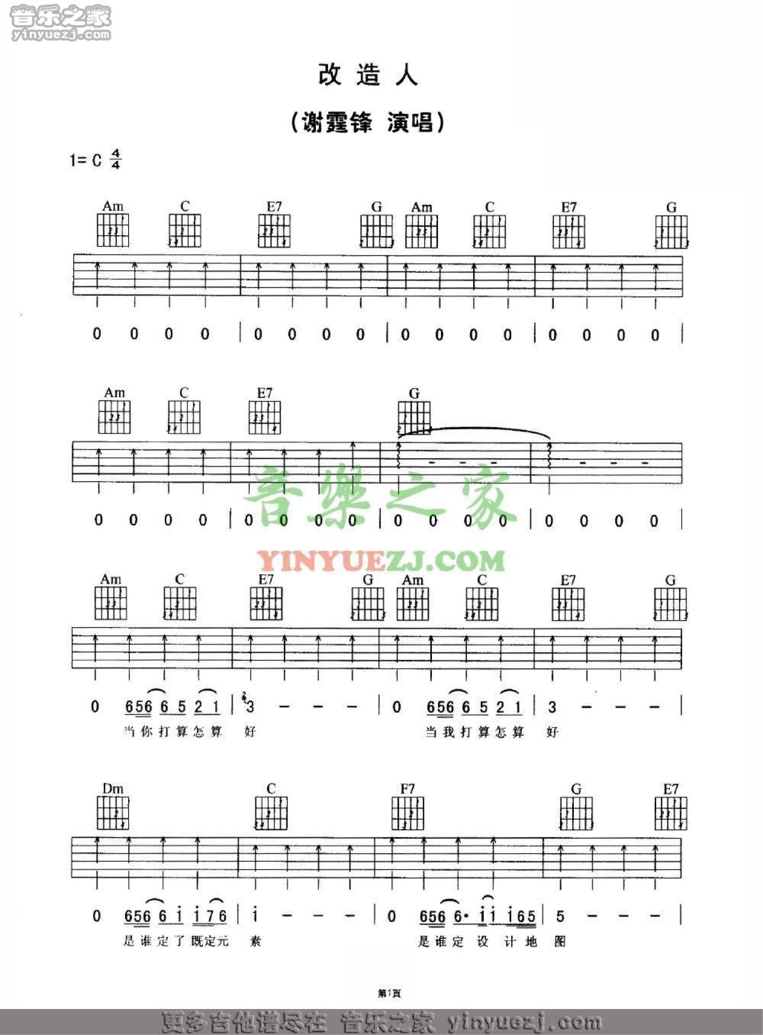 改造人吉他谱 - 谢霆锋 - C调吉他弹唱谱