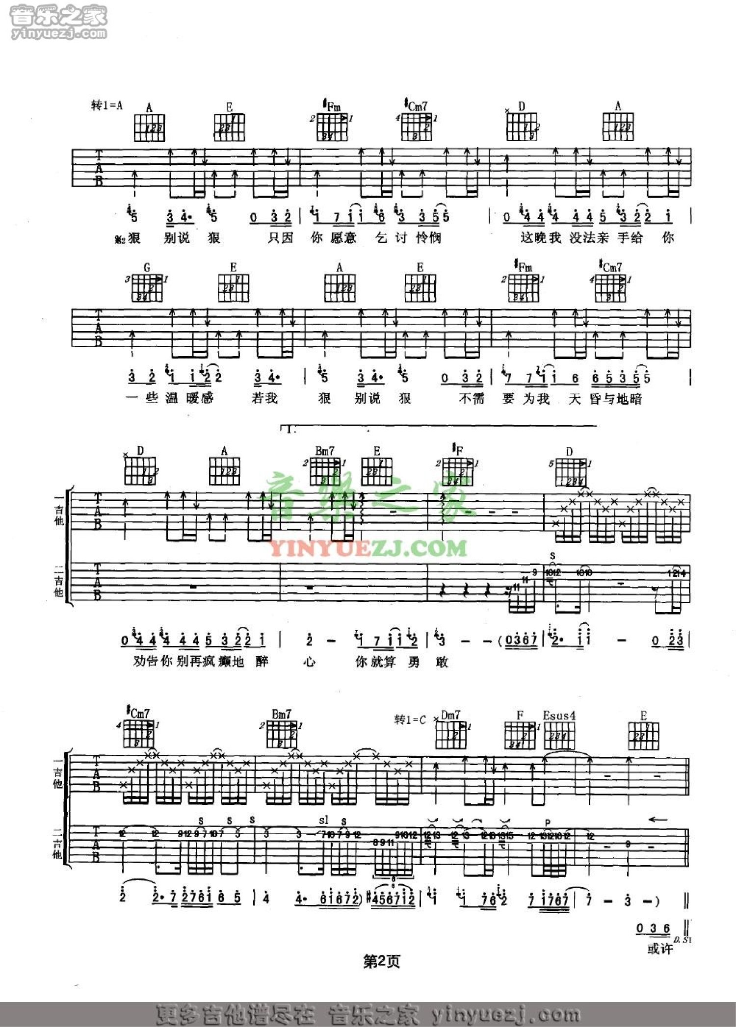 当前位置:琴谱网>吉他弹唱>别说狠