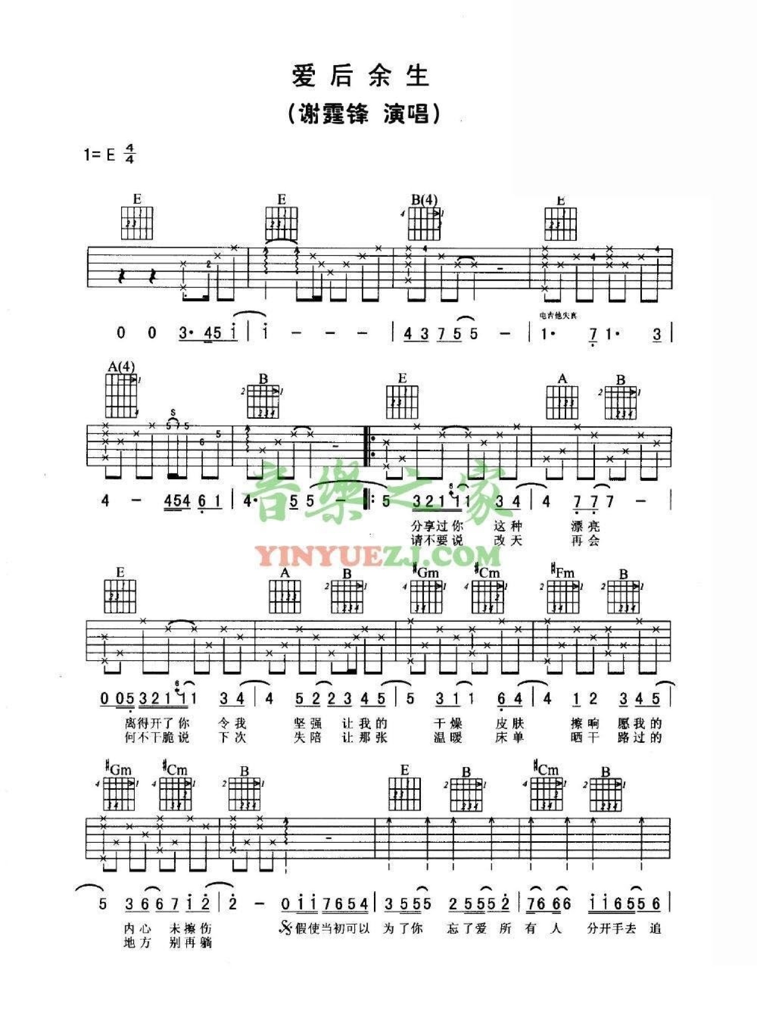 爱后余生吉他谱 - 谢霆锋 - E调吉他弹唱谱