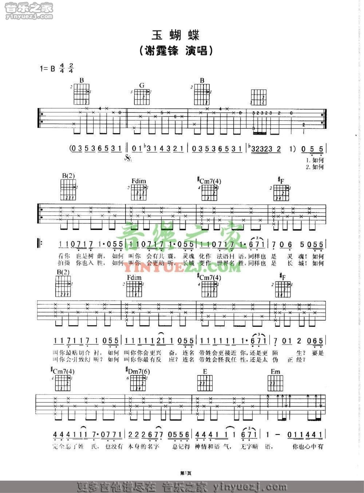 玉蝴蝶吉他谱 - 谢霆锋 - B调吉他弹唱谱