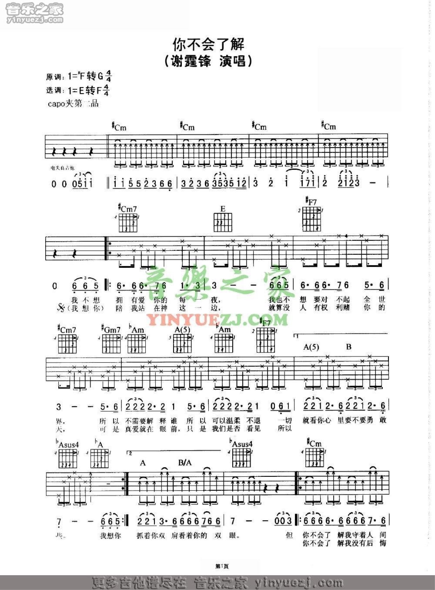 你不会了解吉他谱 - 谢霆锋 - E调吉他弹唱谱