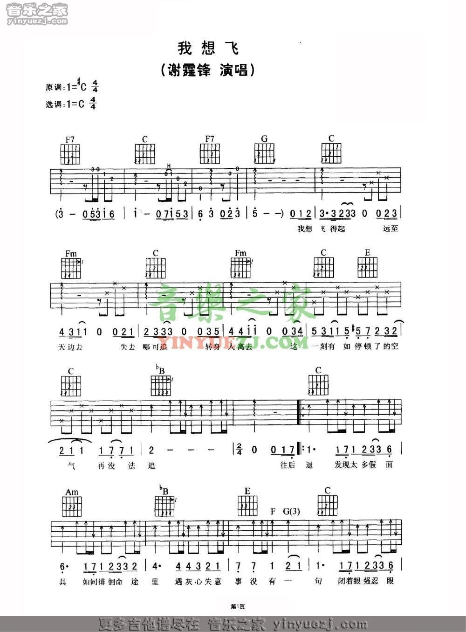 曲谱介绍: 谢霆锋《我想飞》吉他谱