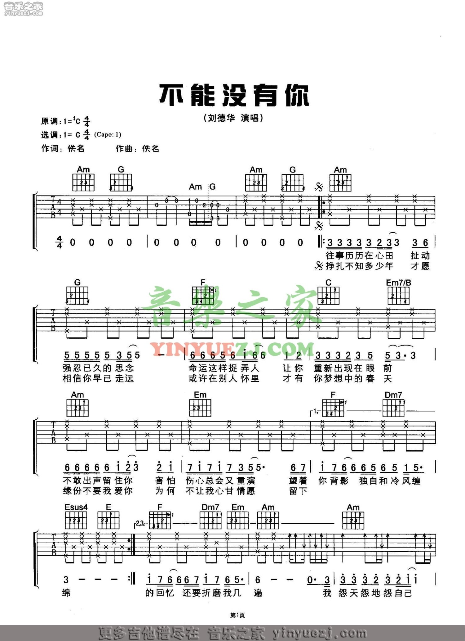 曲谱介绍: 刘德华《不能没有你》吉他谱