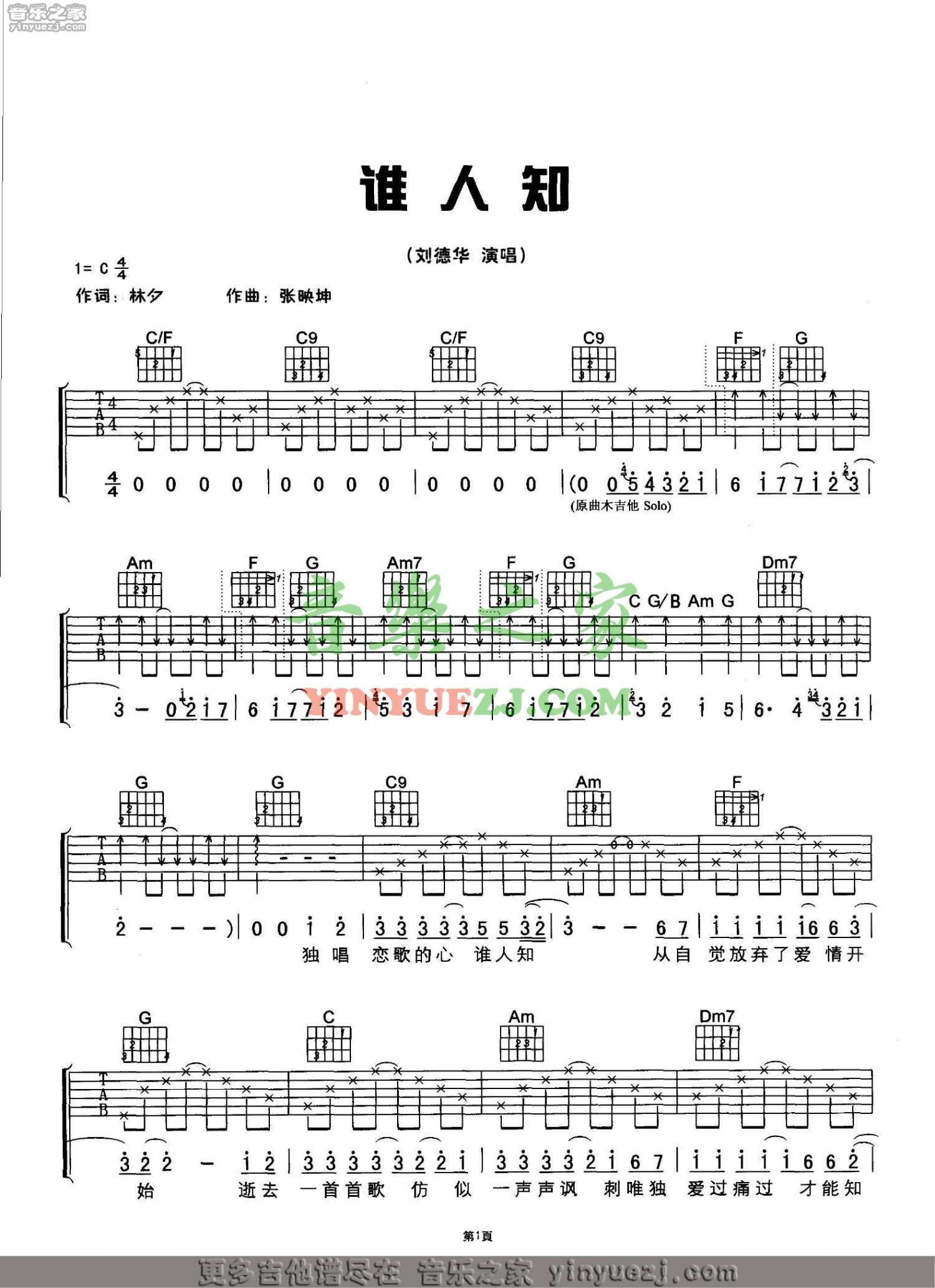 曲谱介绍: 刘德华《谁人知》吉他谱