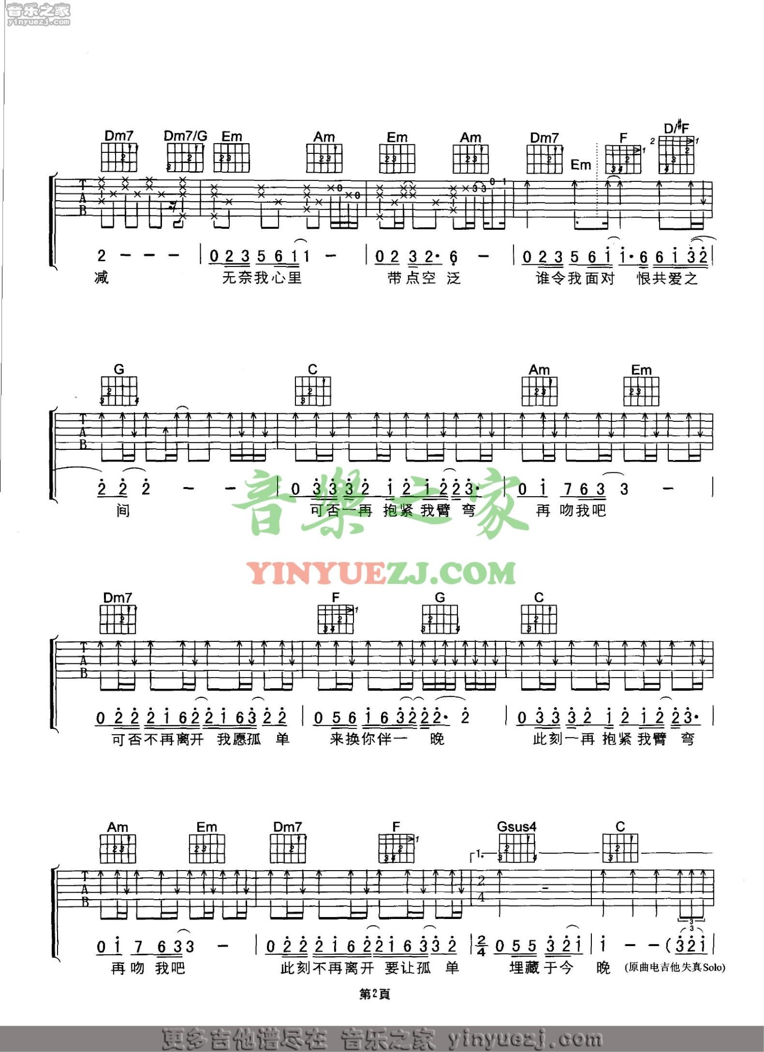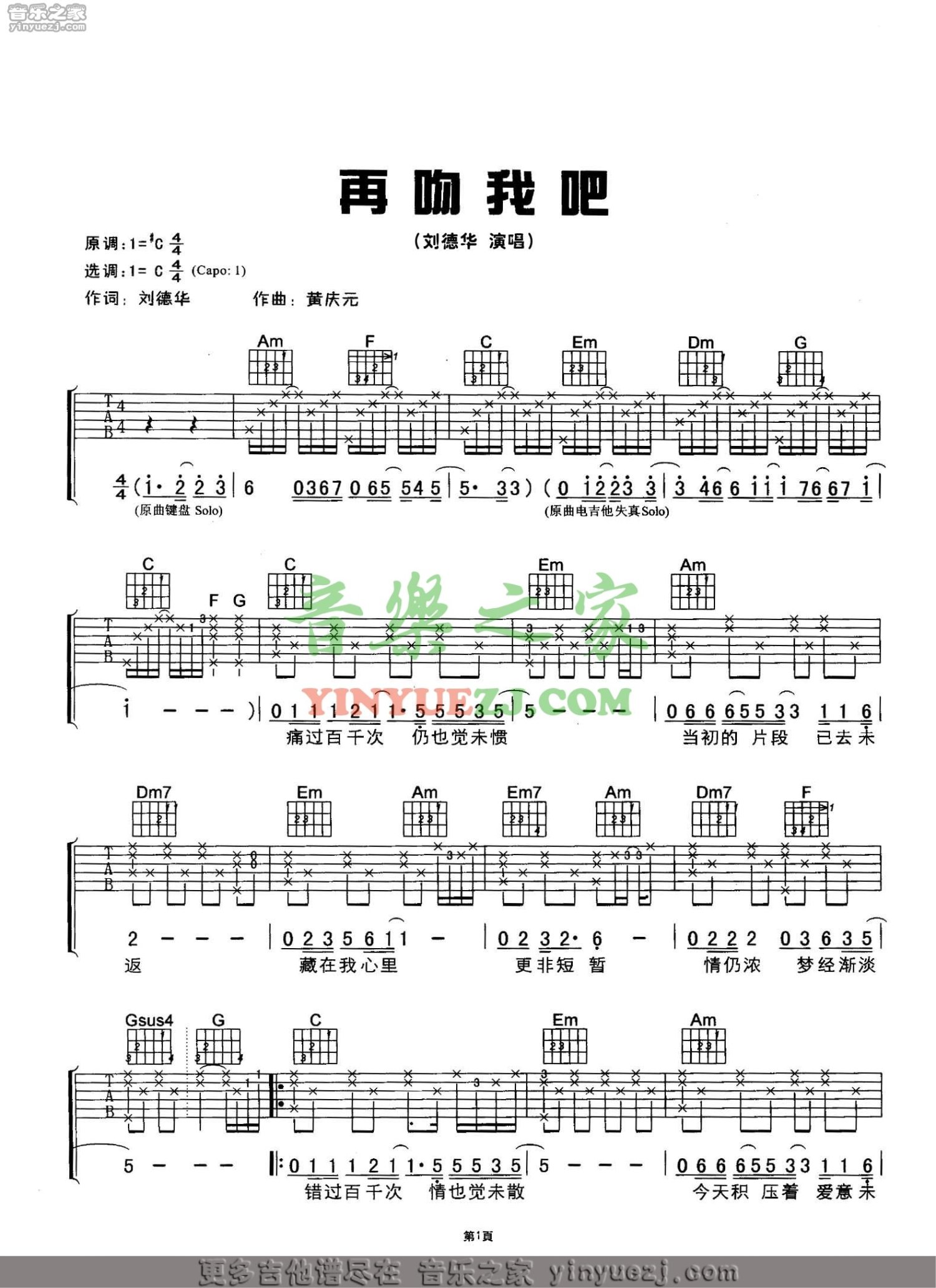 曲谱介绍: 刘德华《再吻我吧人》吉他谱