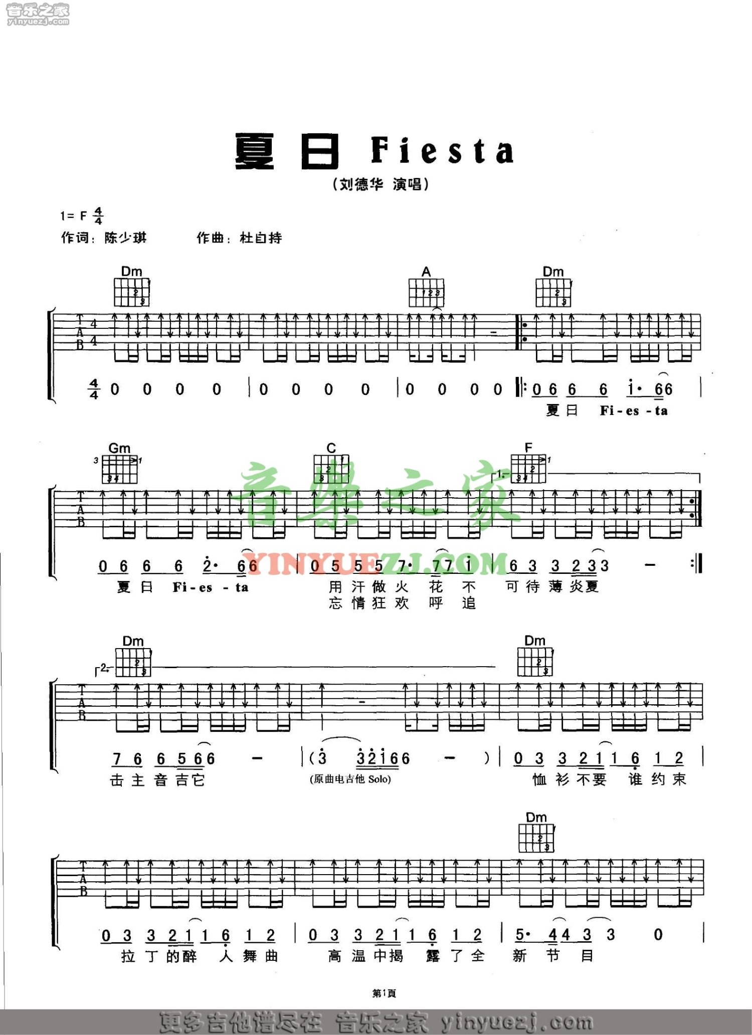 曲谱介绍: 刘德华《夏日fiesta》吉他谱