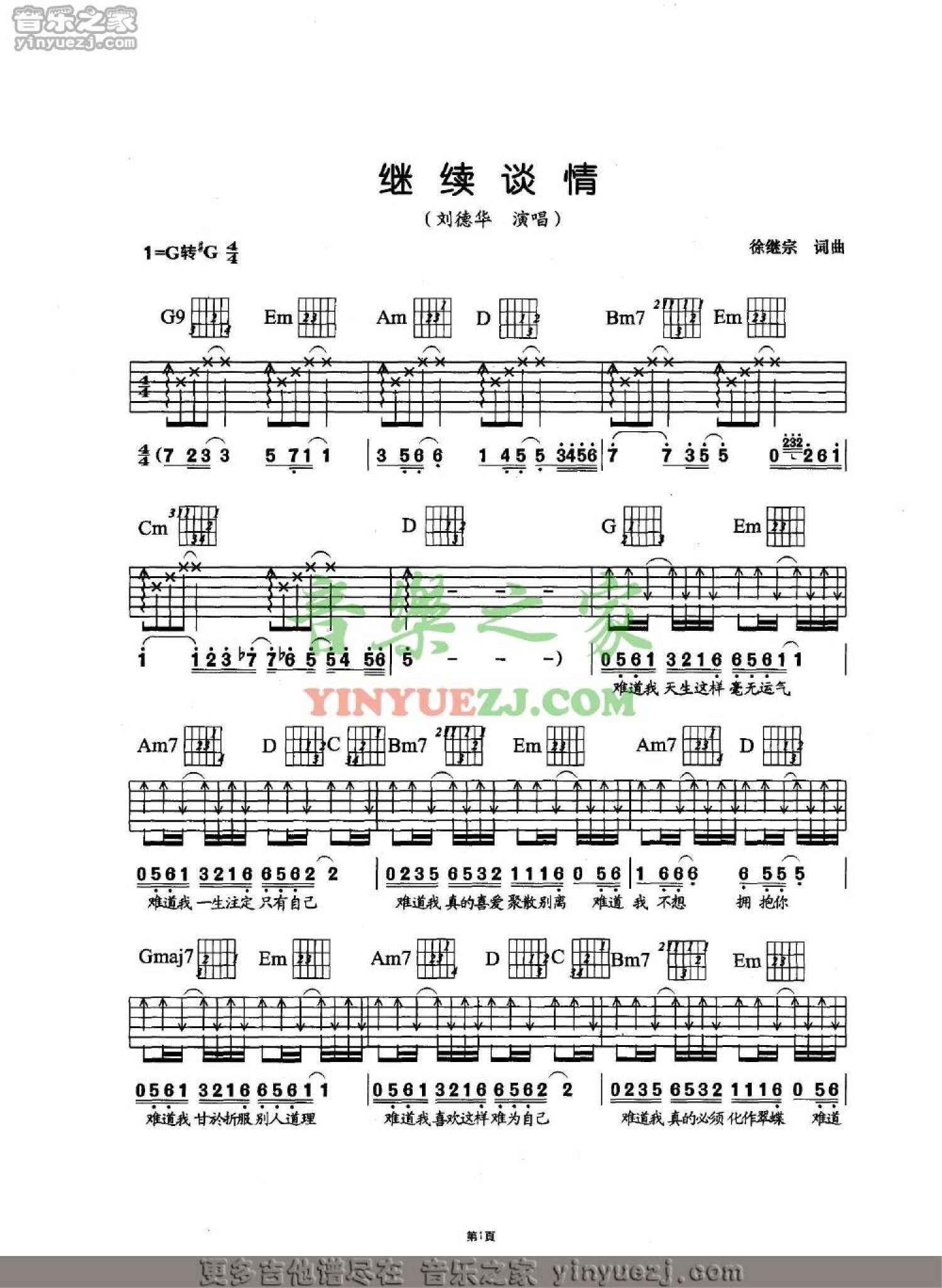 继续谈情吉他谱 - 刘德华 - G调吉他弹唱谱