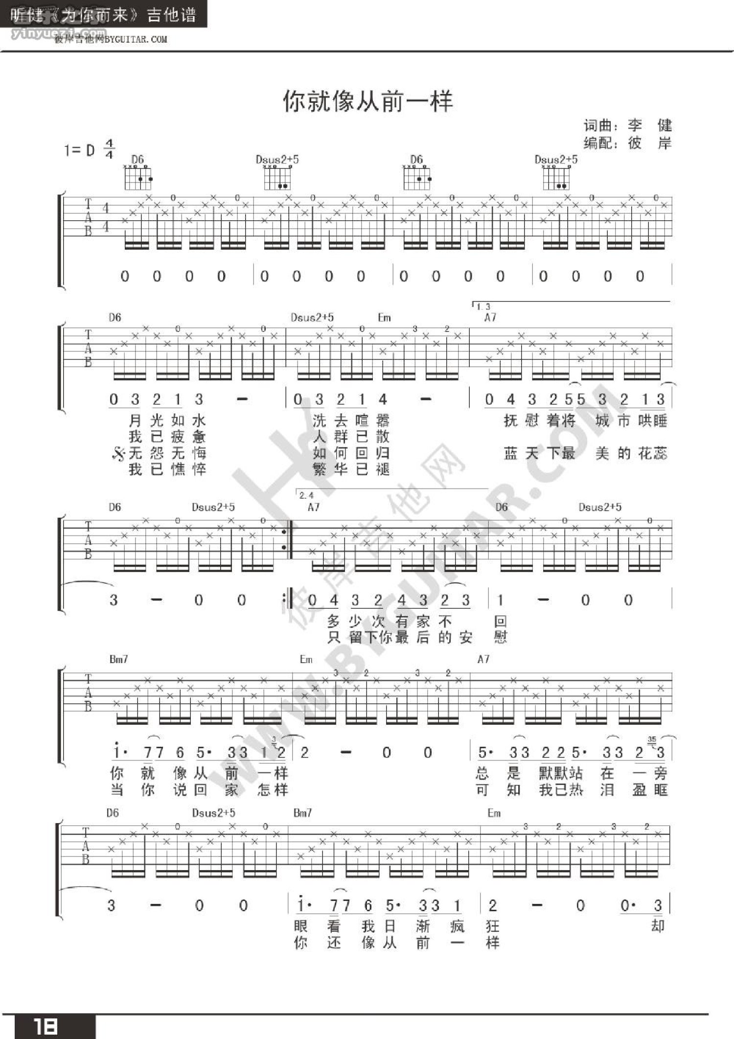 曲谱介绍: 李健《你像从前一样》吉他谱
