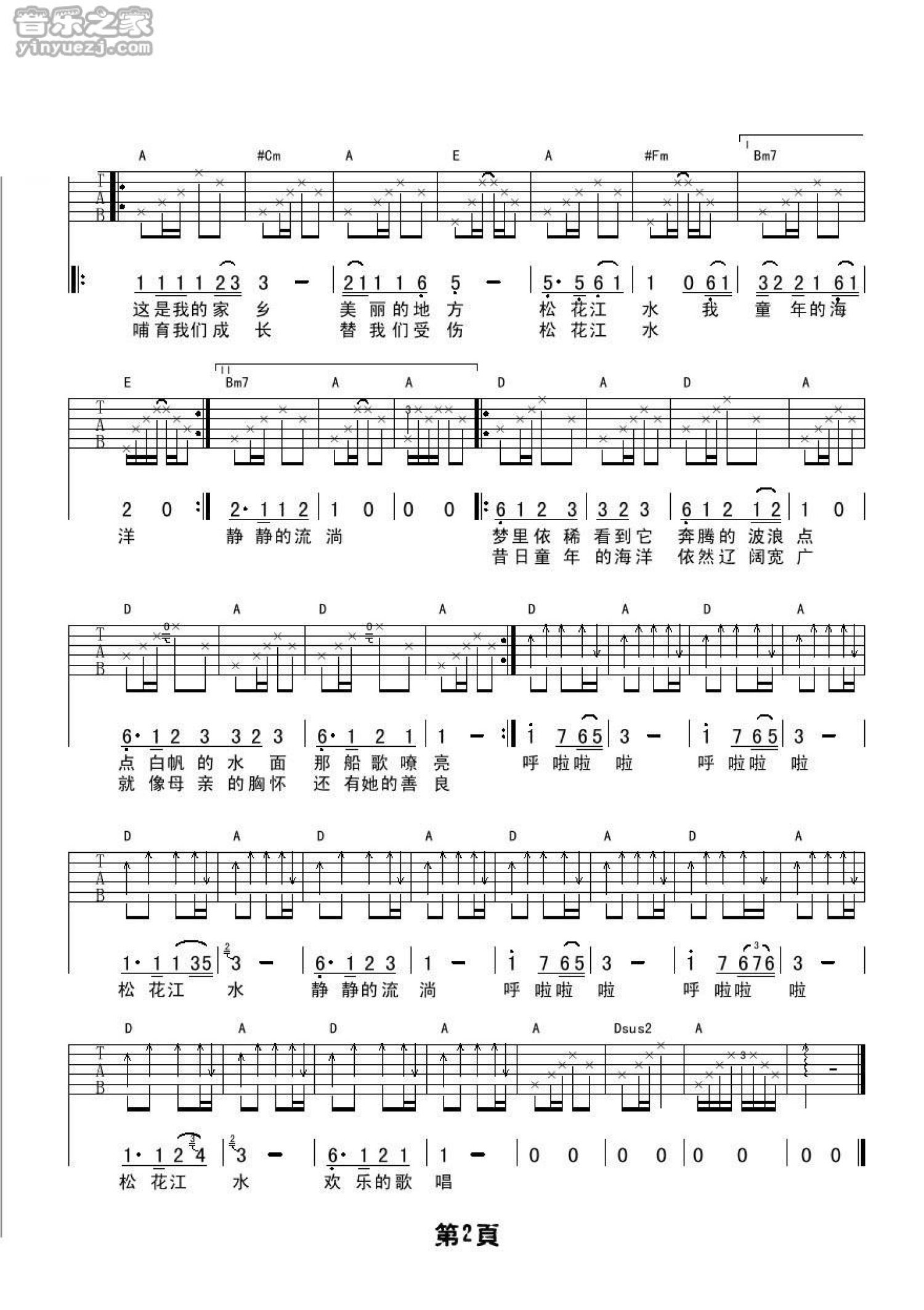 当前位置:琴谱网>吉他弹唱>松花江