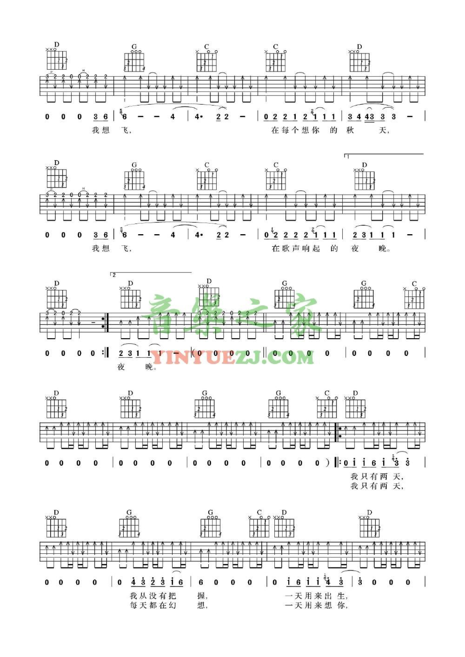 当前位置:琴谱网>吉他弹唱>两天