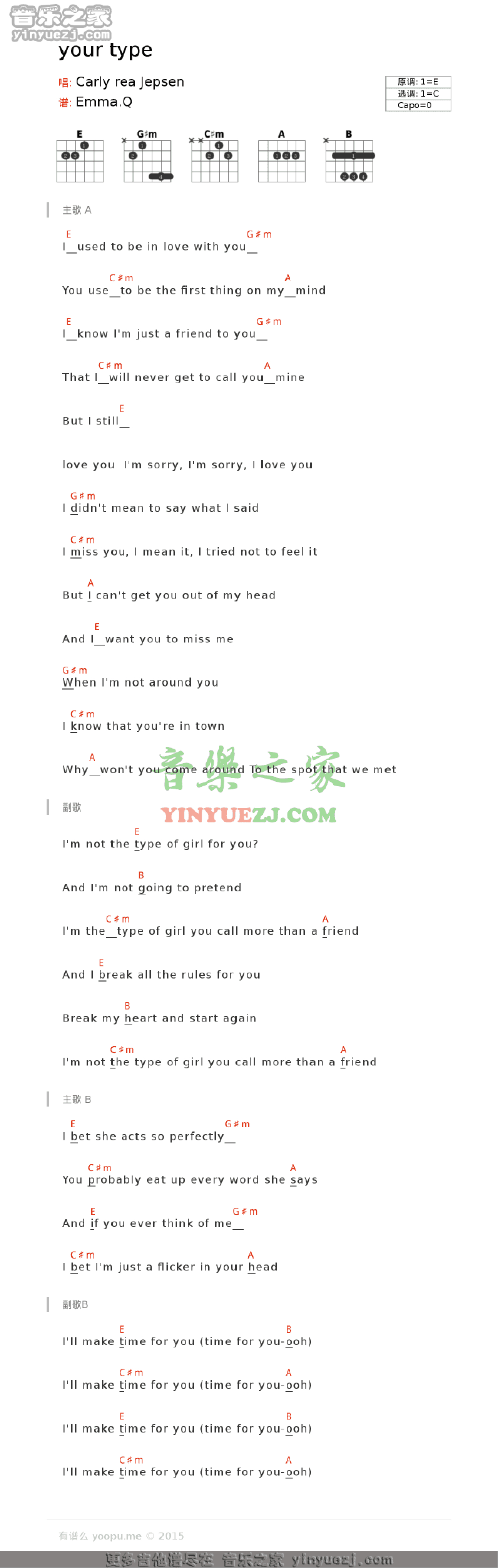曲谱介绍: 《yourtype》吉他谱(和弦txt谱)