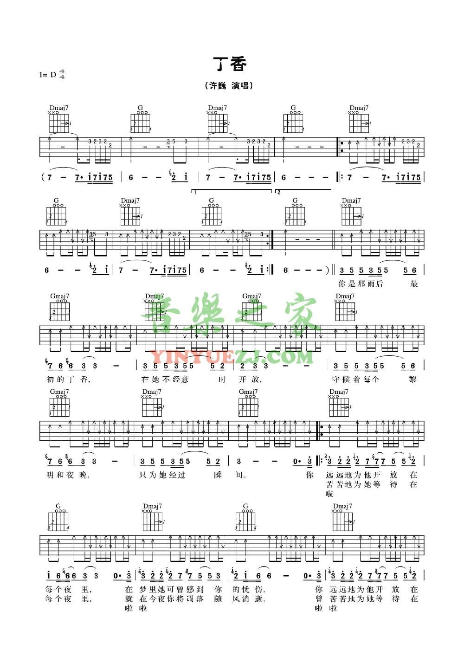 丁香吉他谱 - 许巍 - D调吉他弹唱谱