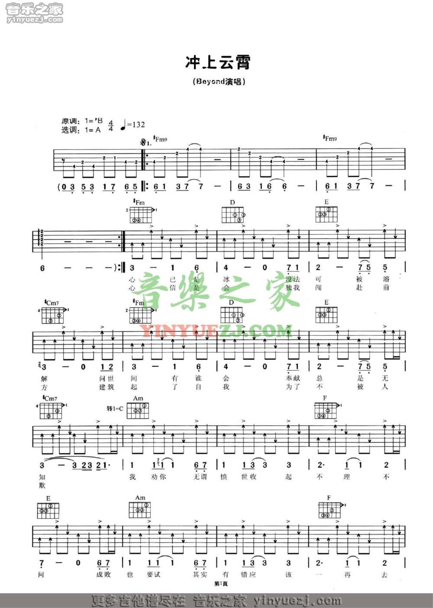 曲谱介绍: Beyond《冲上云霄》吉他谱