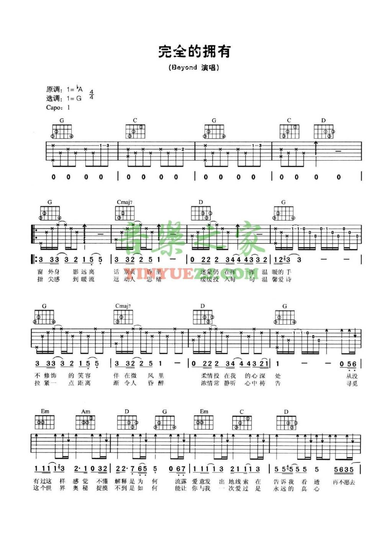 完全的拥有吉他谱 - Beyond - G调吉他弹唱谱