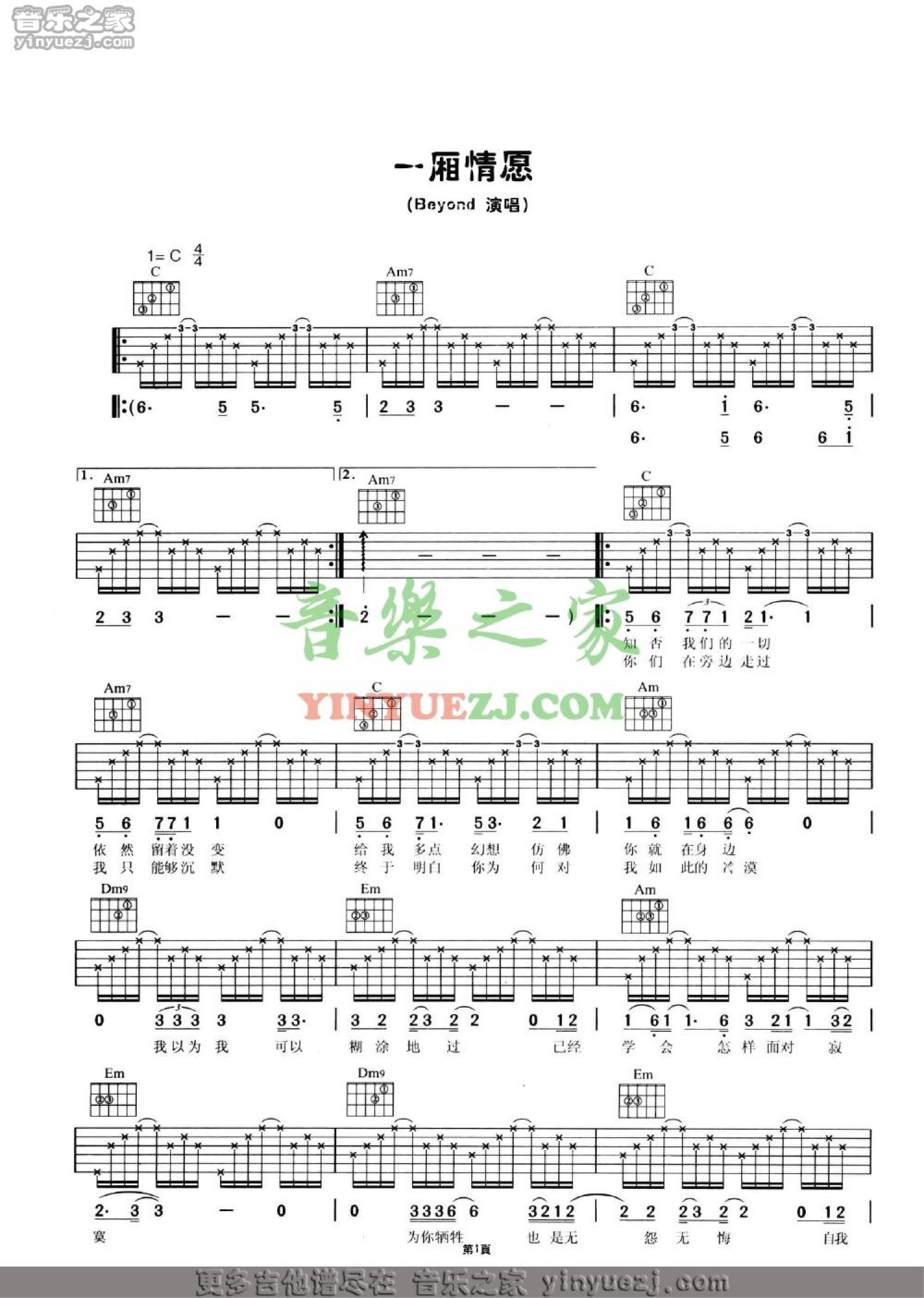 曲谱介绍: Beyond《一厢情愿》吉他谱