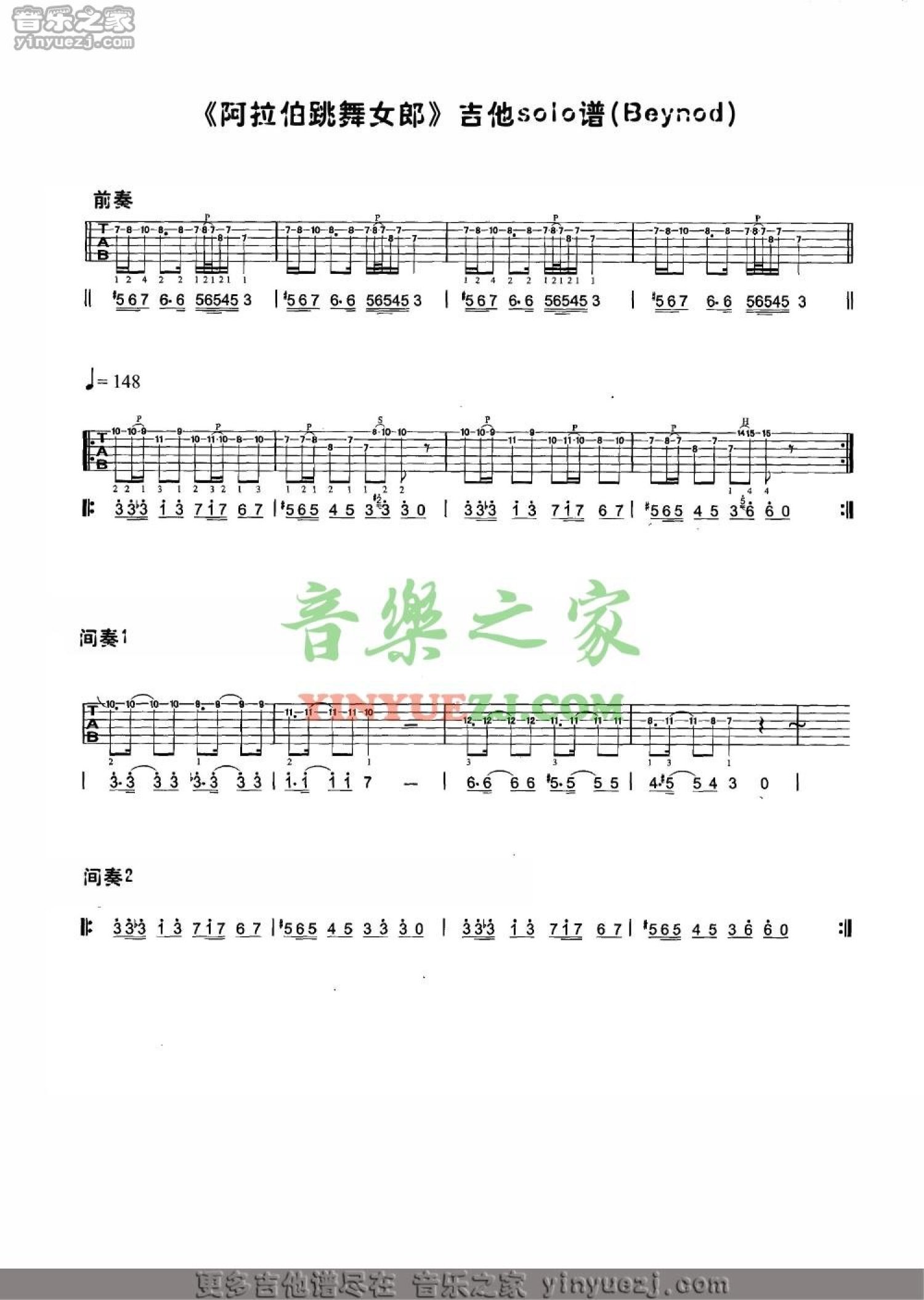 曲谱介绍: Beyond《阿拉伯跳舞女郎》solo吉他谱