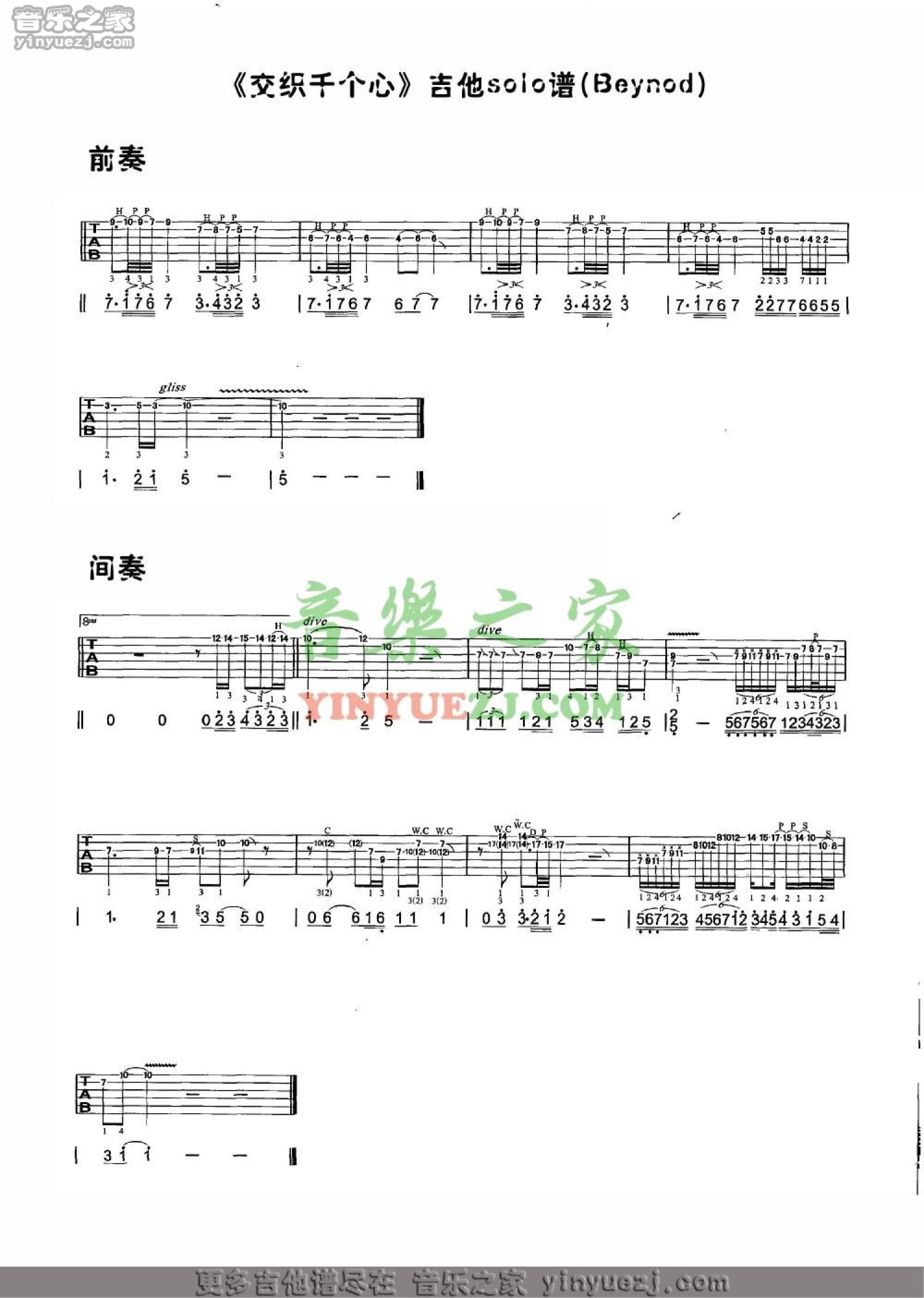 曲谱介绍: Beyond《交织千个心》solo吉他谱
