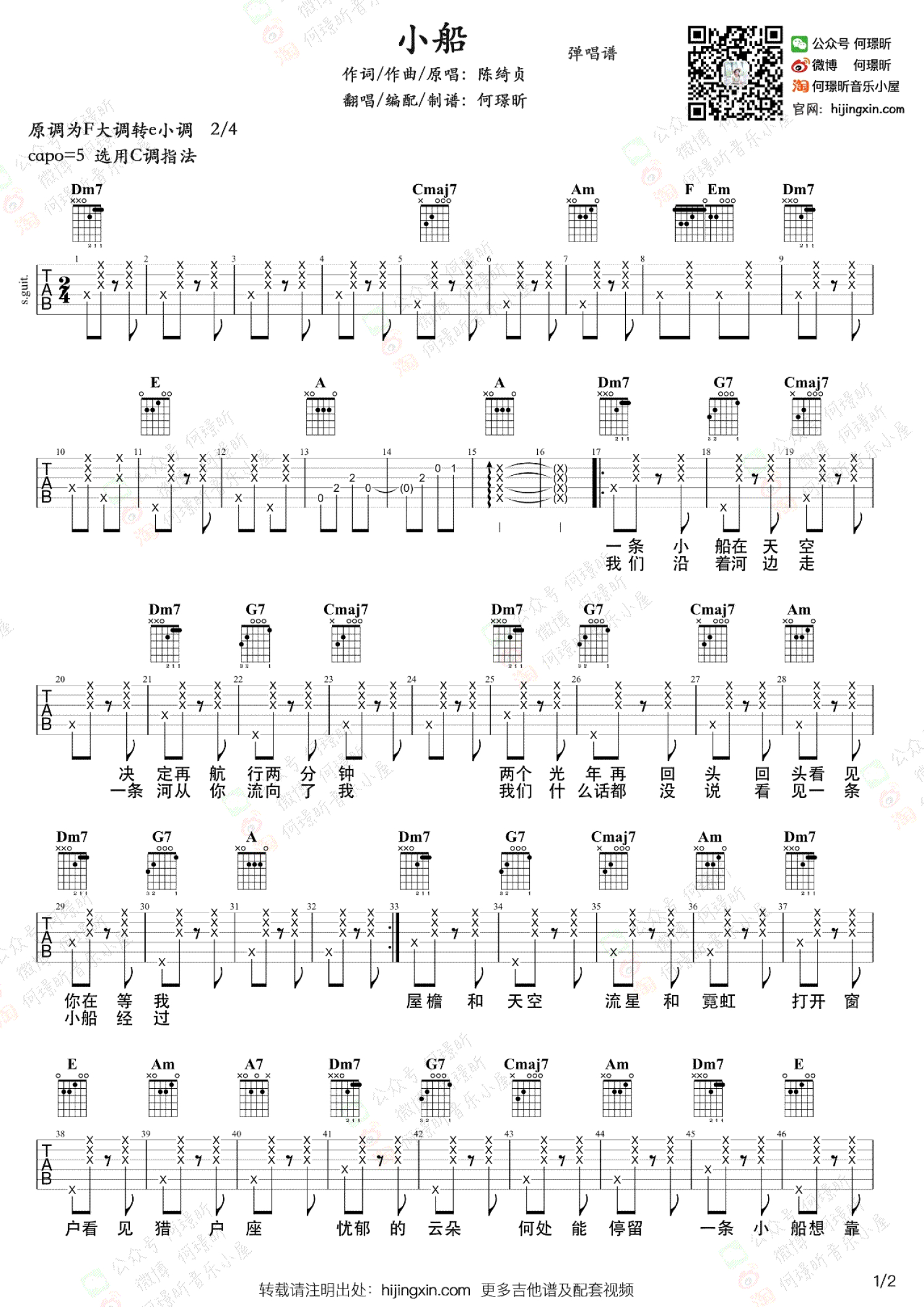 当前位置:琴谱网>吉他弹唱>小船