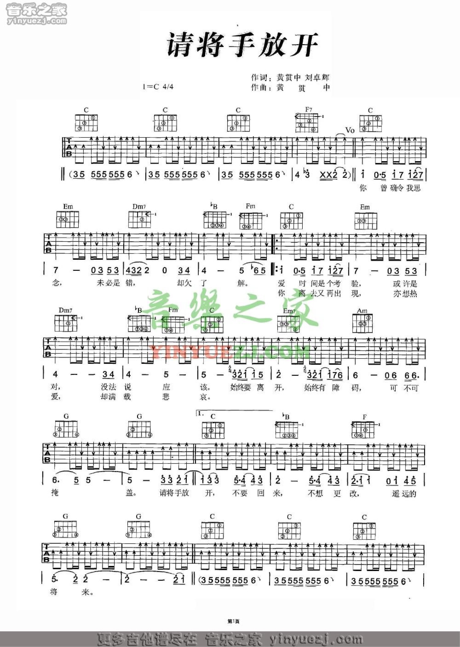 当前位置:琴谱网>吉他弹唱>请将手放开