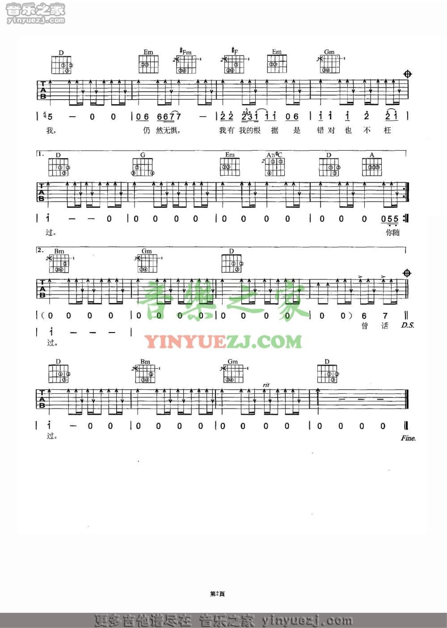 吉他弹唱D调来源:YYZJ2183 浏览2021-01-10 16:41发布图谱共2页