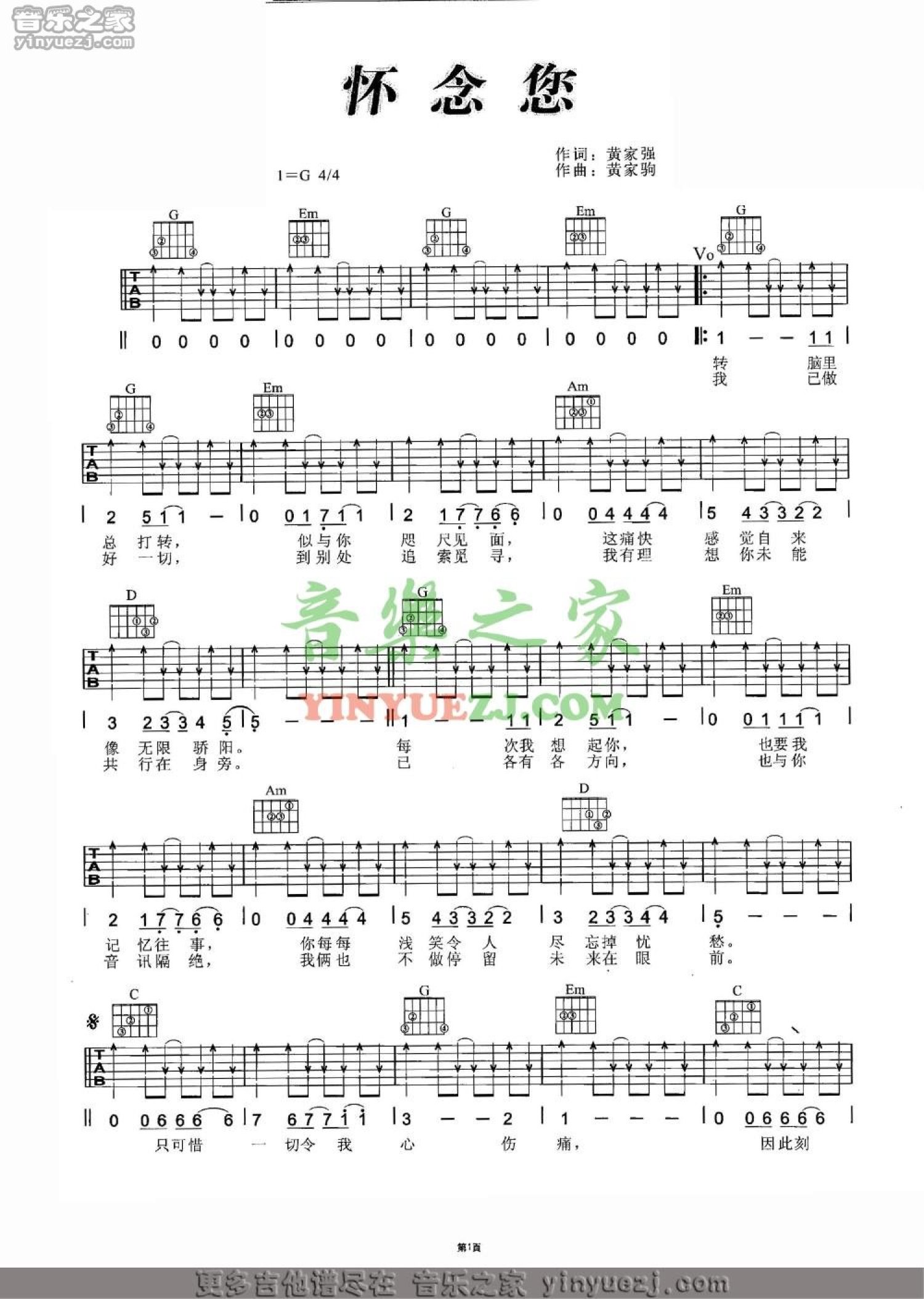 当前位置:琴谱网>吉他弹唱>怀念您