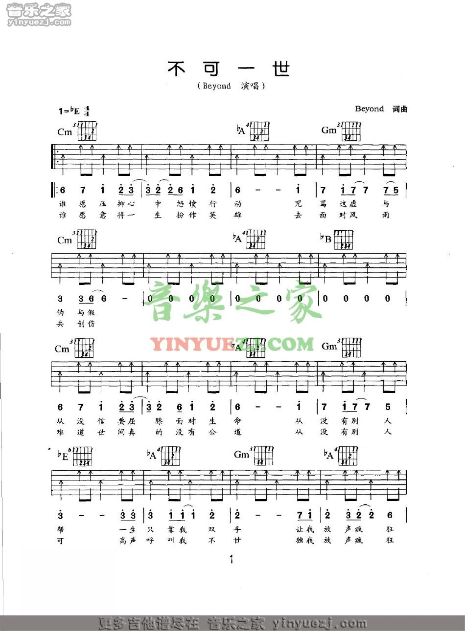 不可一世吉他谱 - Beyond - E调吉他弹唱谱
